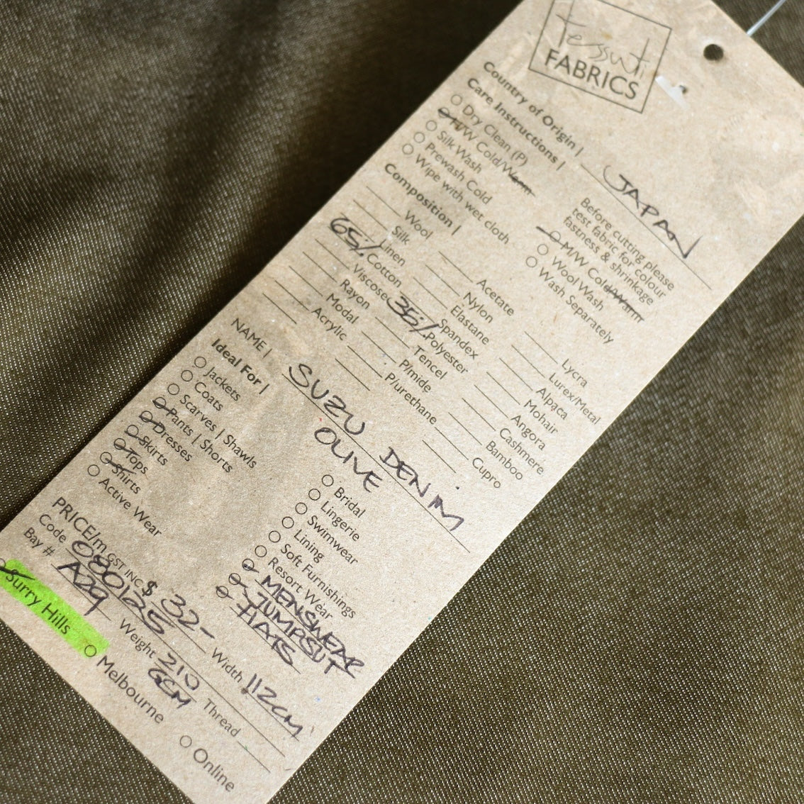 Japanese olive 65% cotton 35% polyester denim
