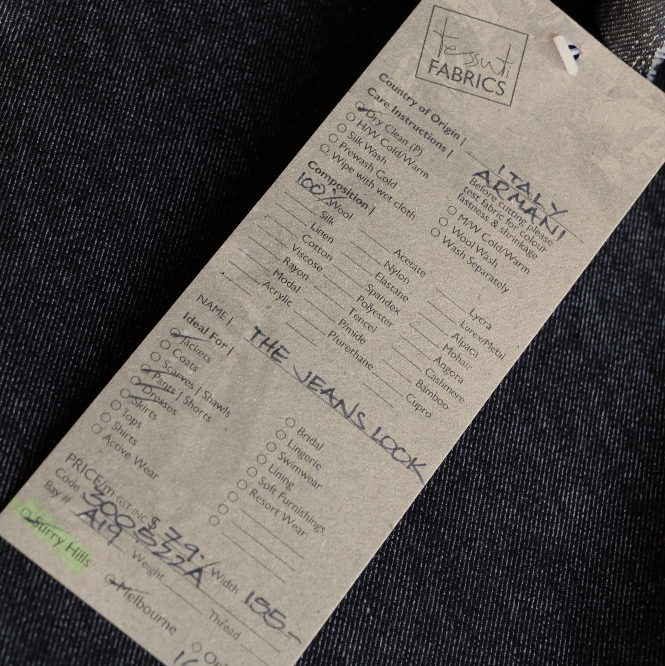 Italian designer black 100% wool denim