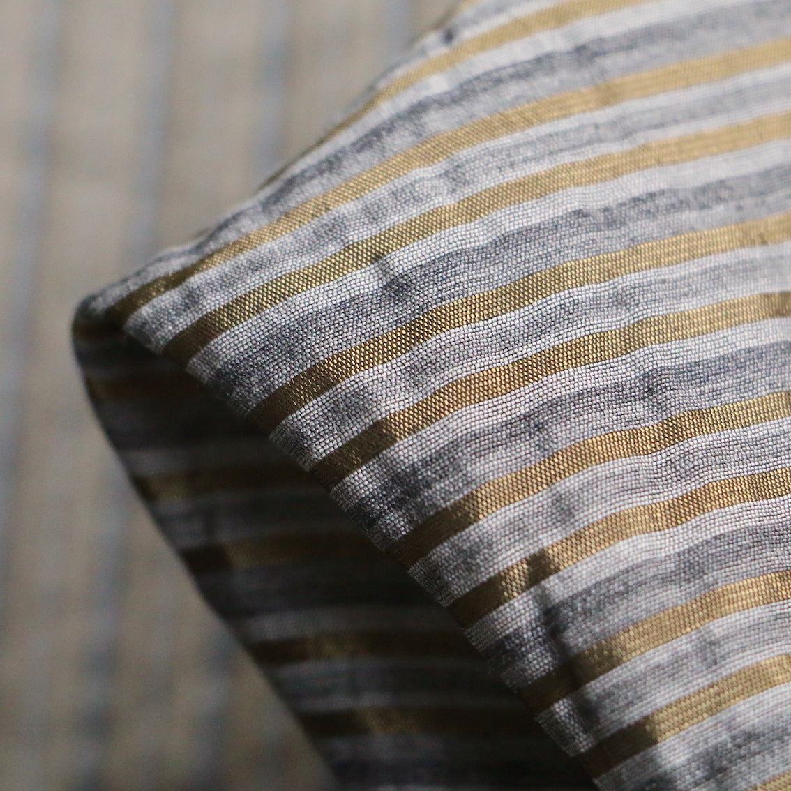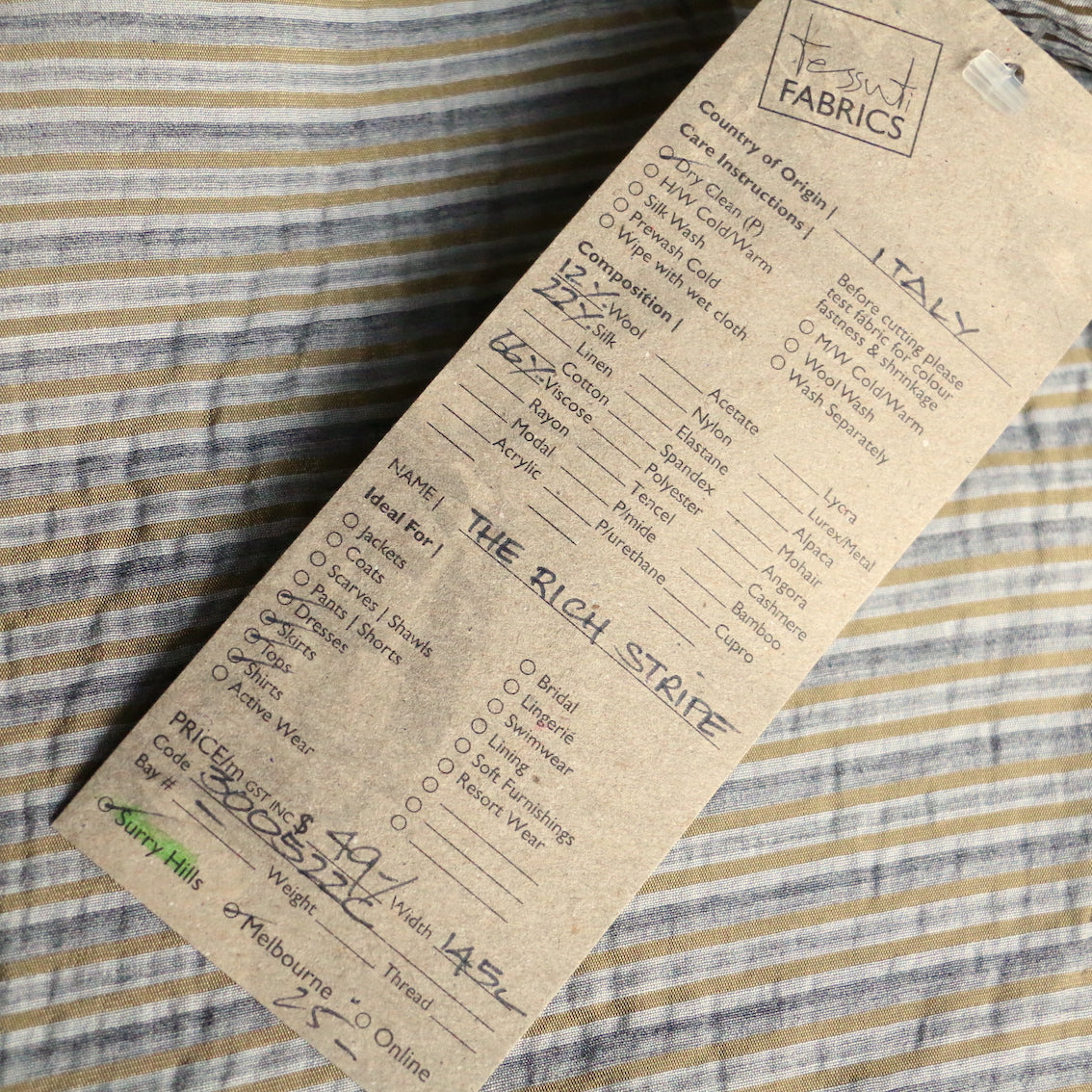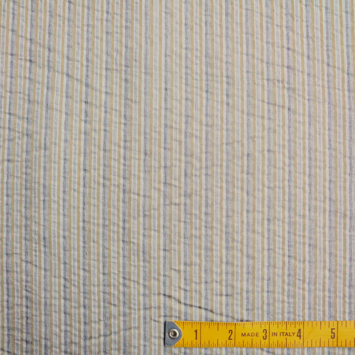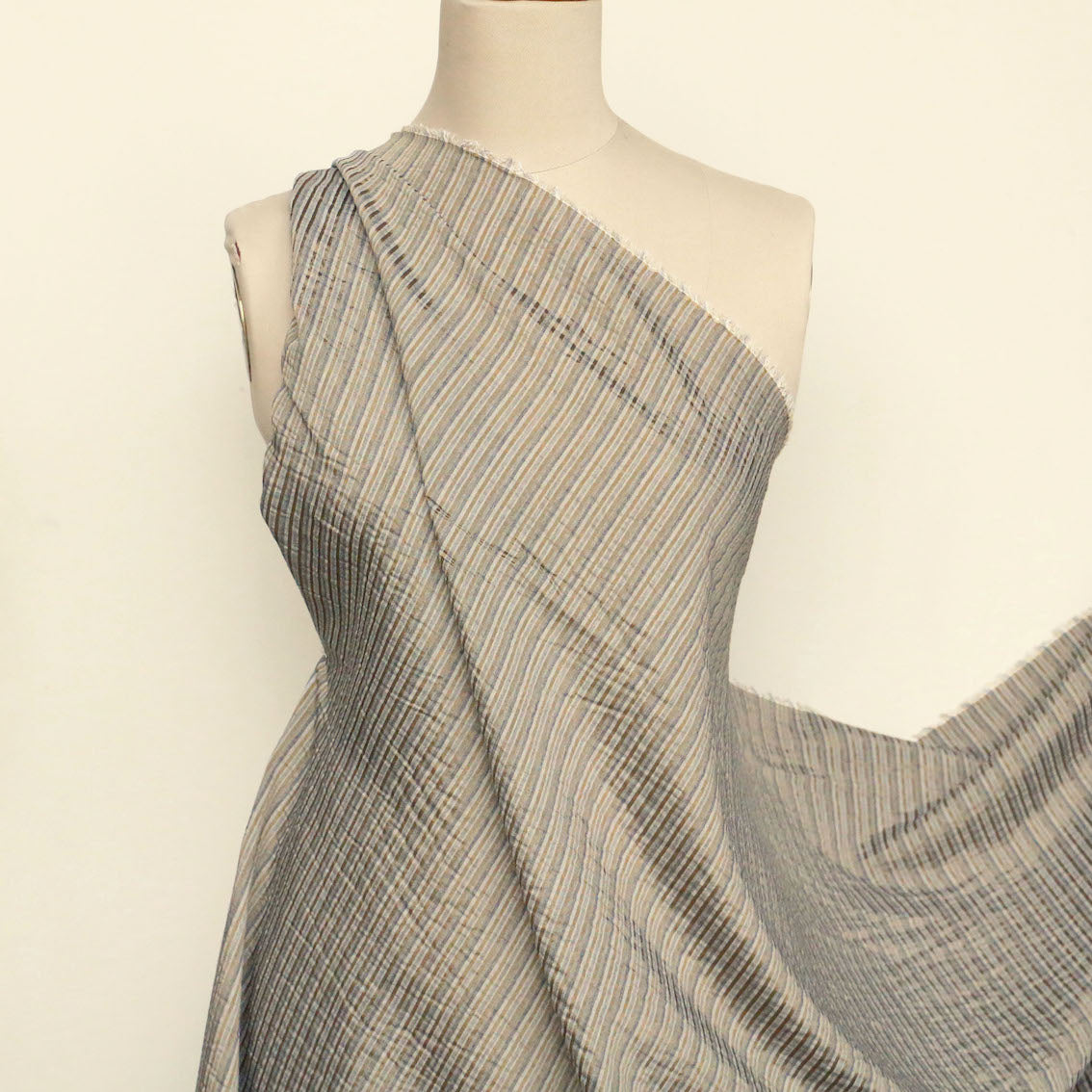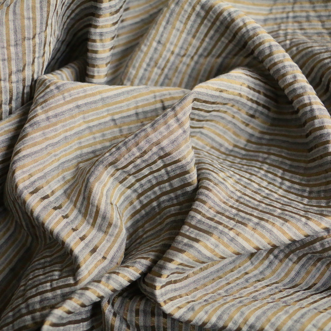 Italian grey/silver/gold fine striped 66% viscose 22% silk 12% wool