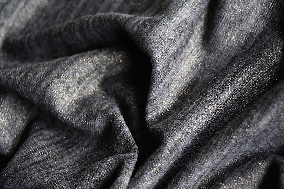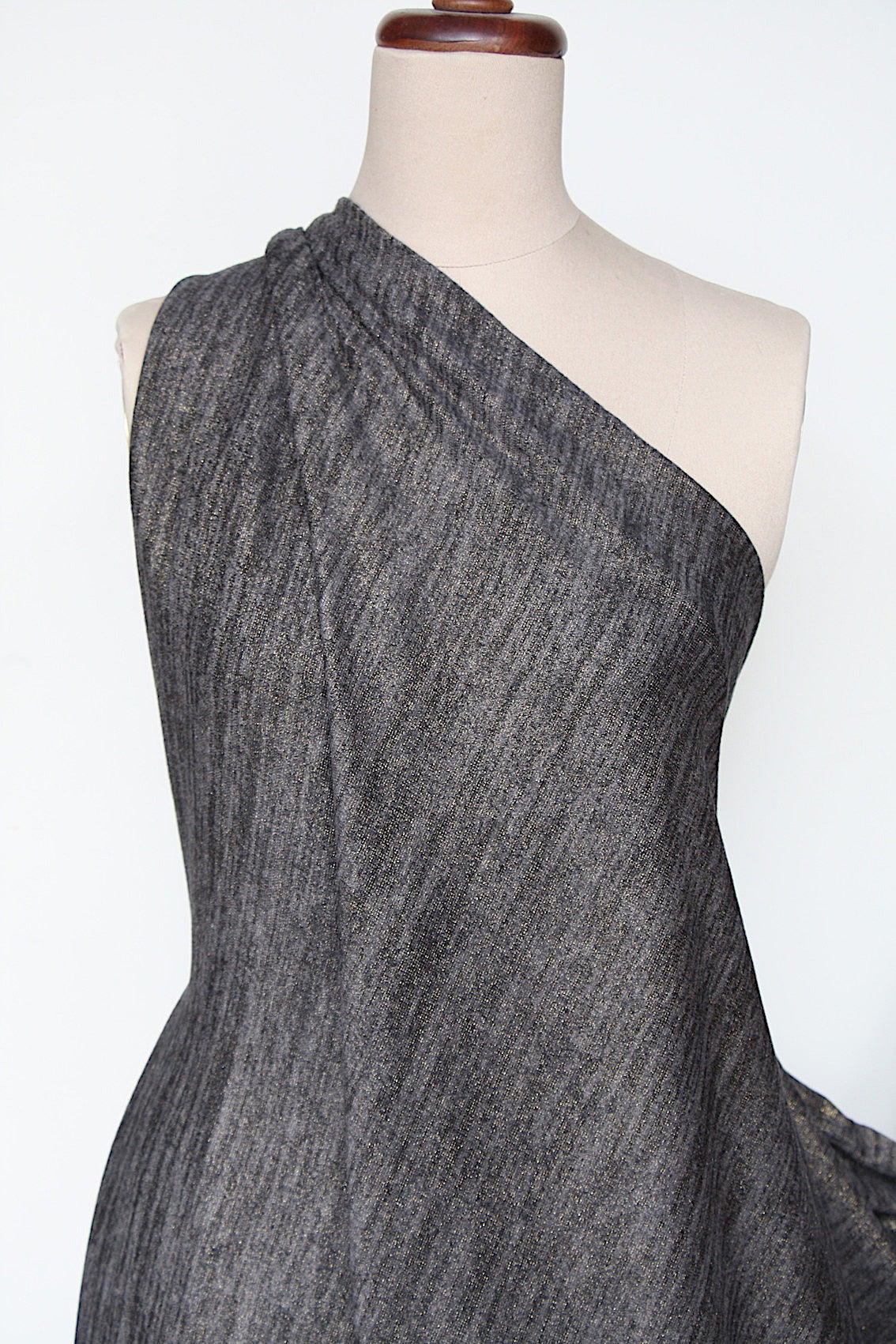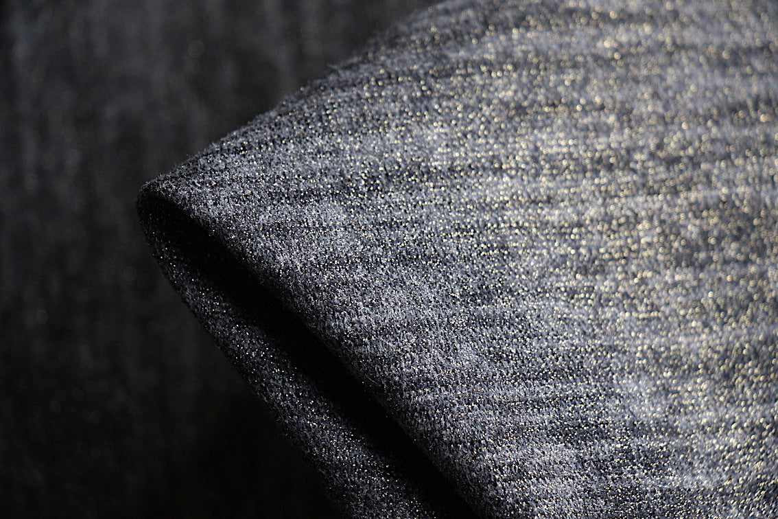 Designer end grey marle knit with gold lurex coating fine 100% polyester knit.