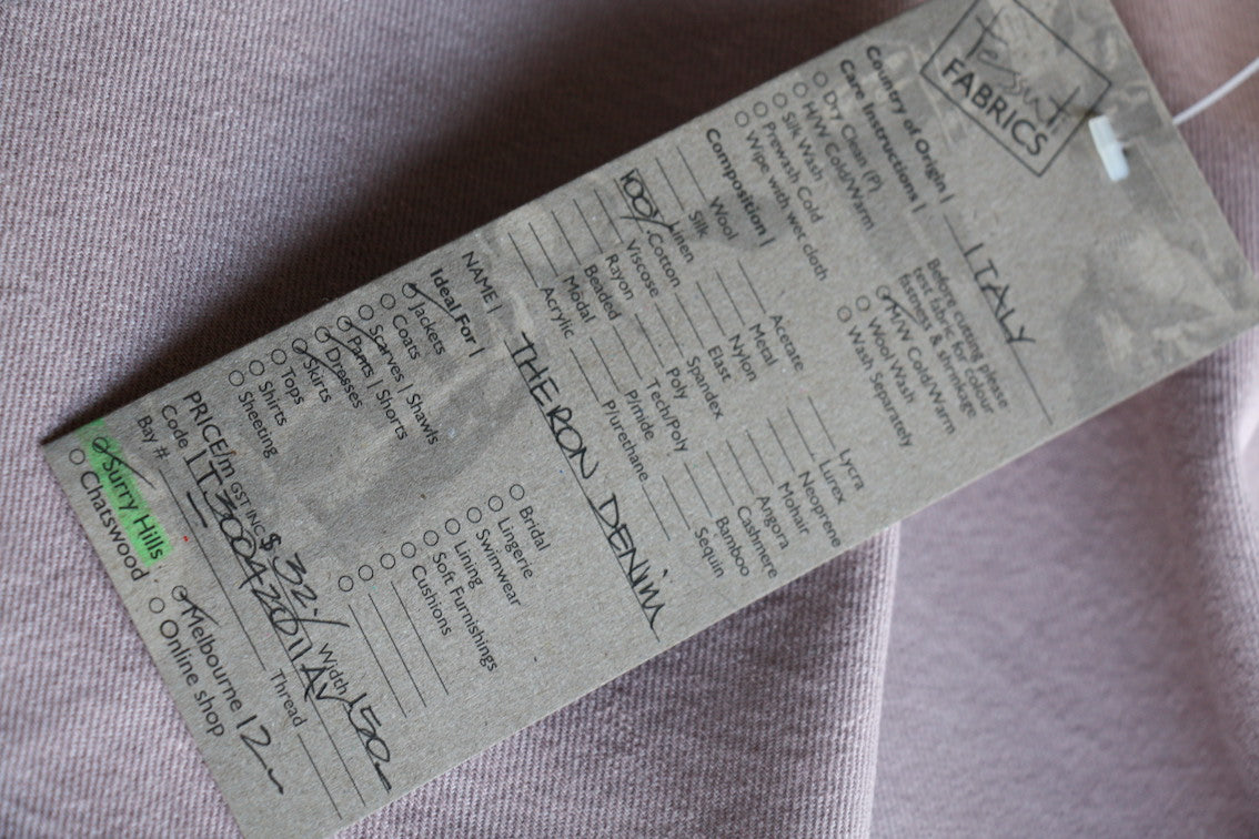 Italian dusty pink washed 100% cotton denim. Width: 150cm Weight: 8oz