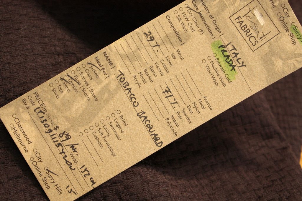 We don’t offer refunds or exchange for incorrect purchases once fabric has been cut, discounted remnants or Tessuti Patterns. If you are not sure if the fabric sample online is the correct colour, pattern, weight or style, please order a swatch or contact us before you make your purchase. The colour of our online samples may vary in appearance between computer monitors, so if colour is critical, contact us before purchase.