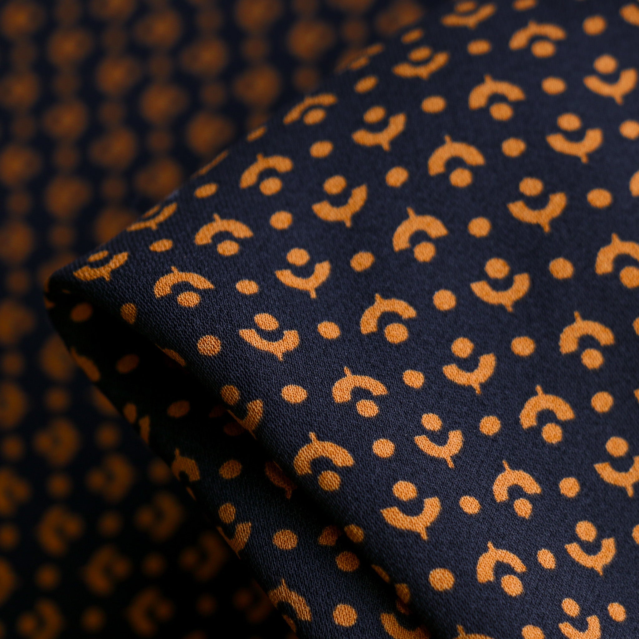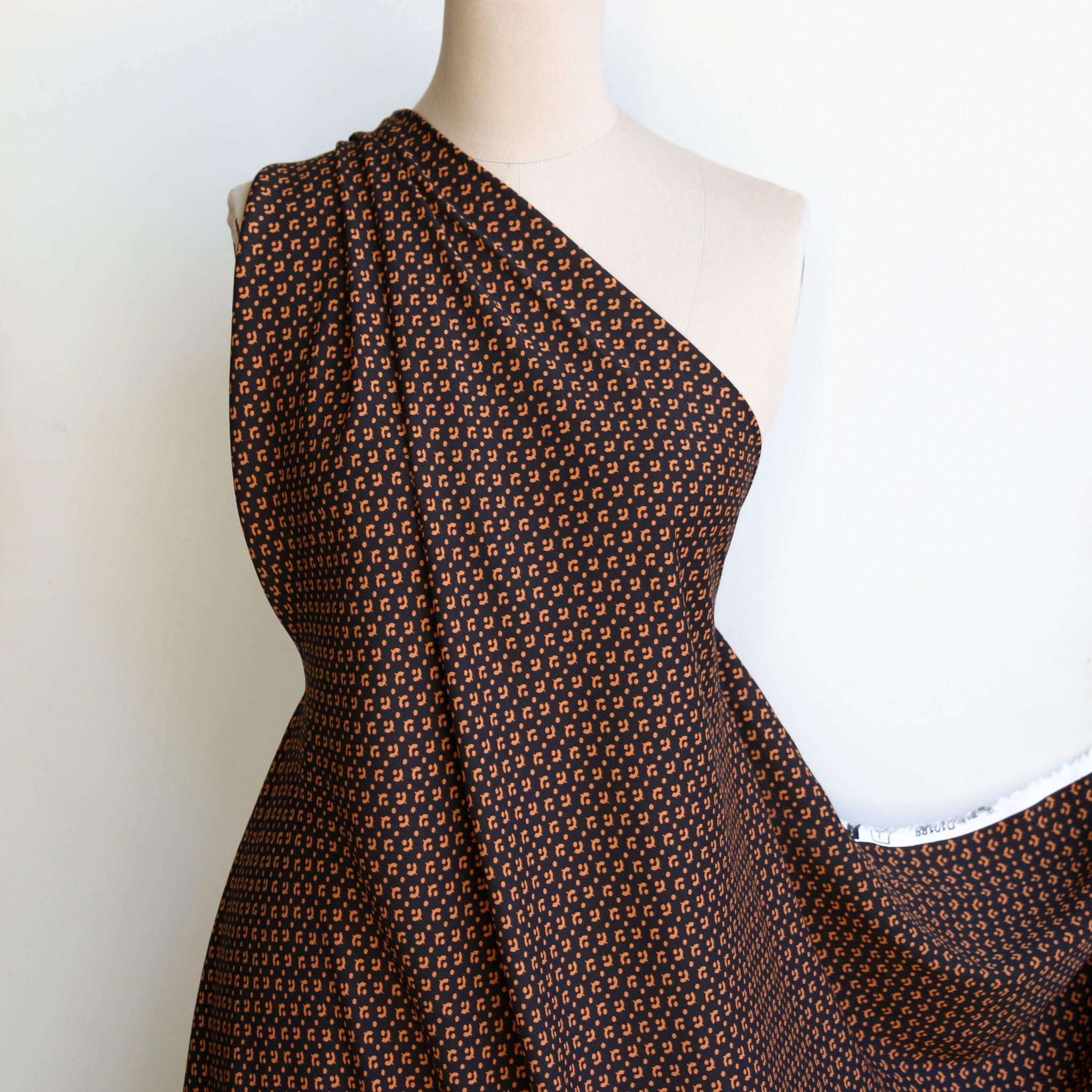Italian designer black/rust printed 100% viscose crepe