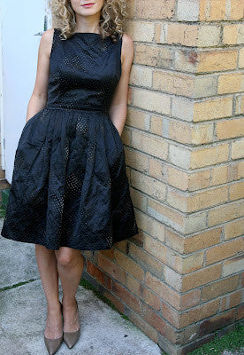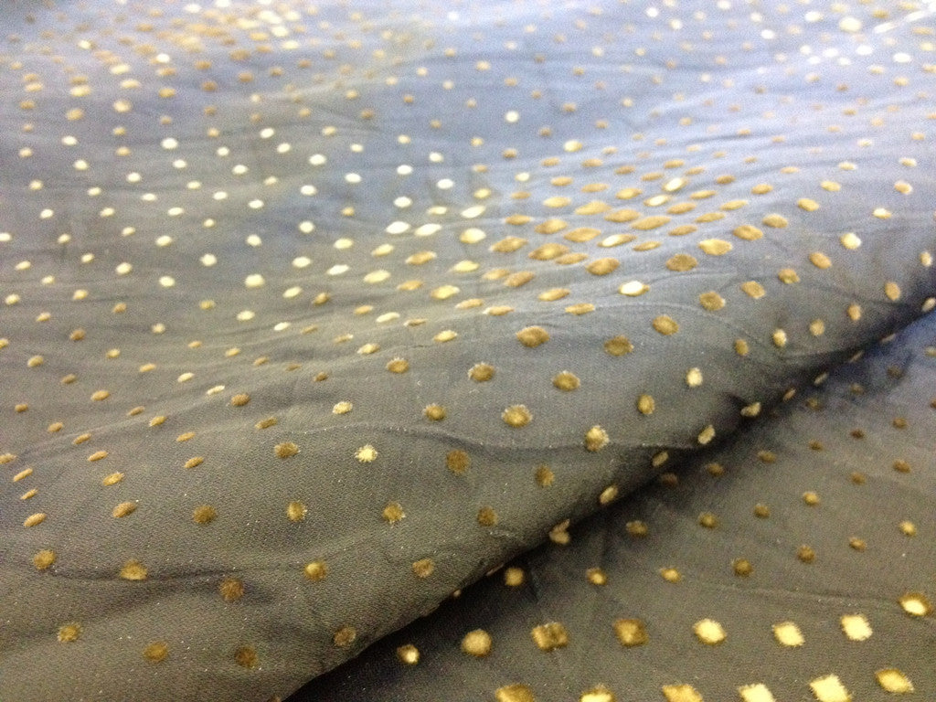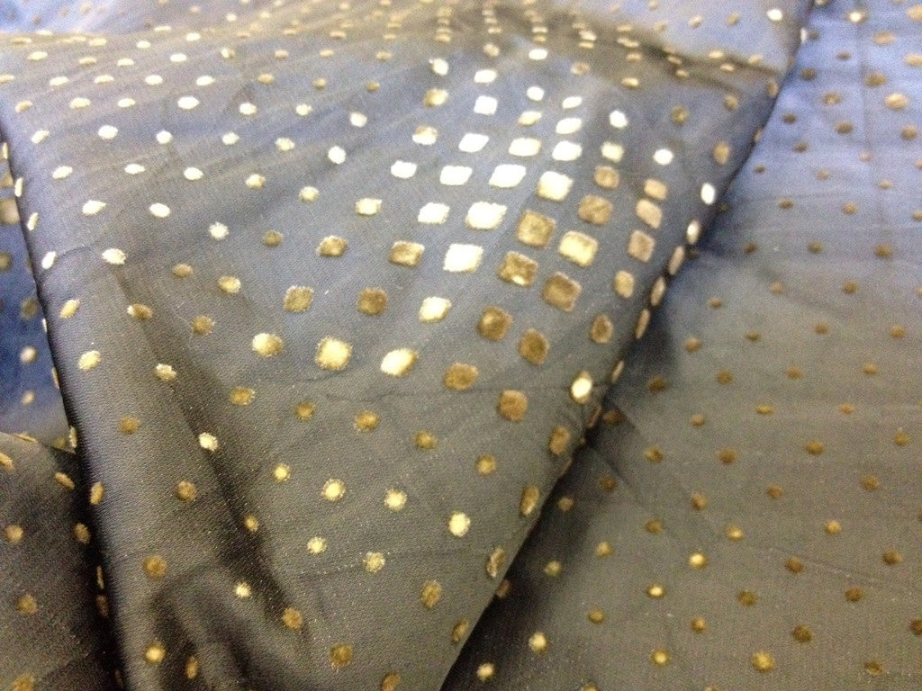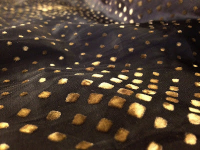 Italian Black Satin with Bronze Velvet Spot Flocking - 54% Poly 39% Cotton 7% Metal. Width:150cm