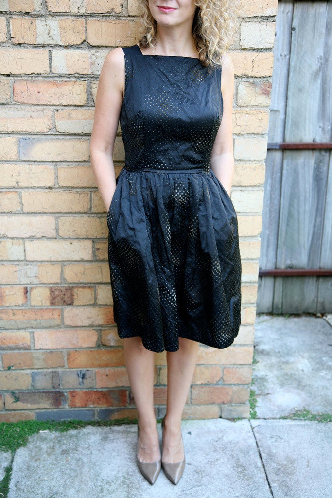 This fabric is a true black, as it's a satin it doesn't photograph true to colour. The image of the dress made up in this shows it's true colour.