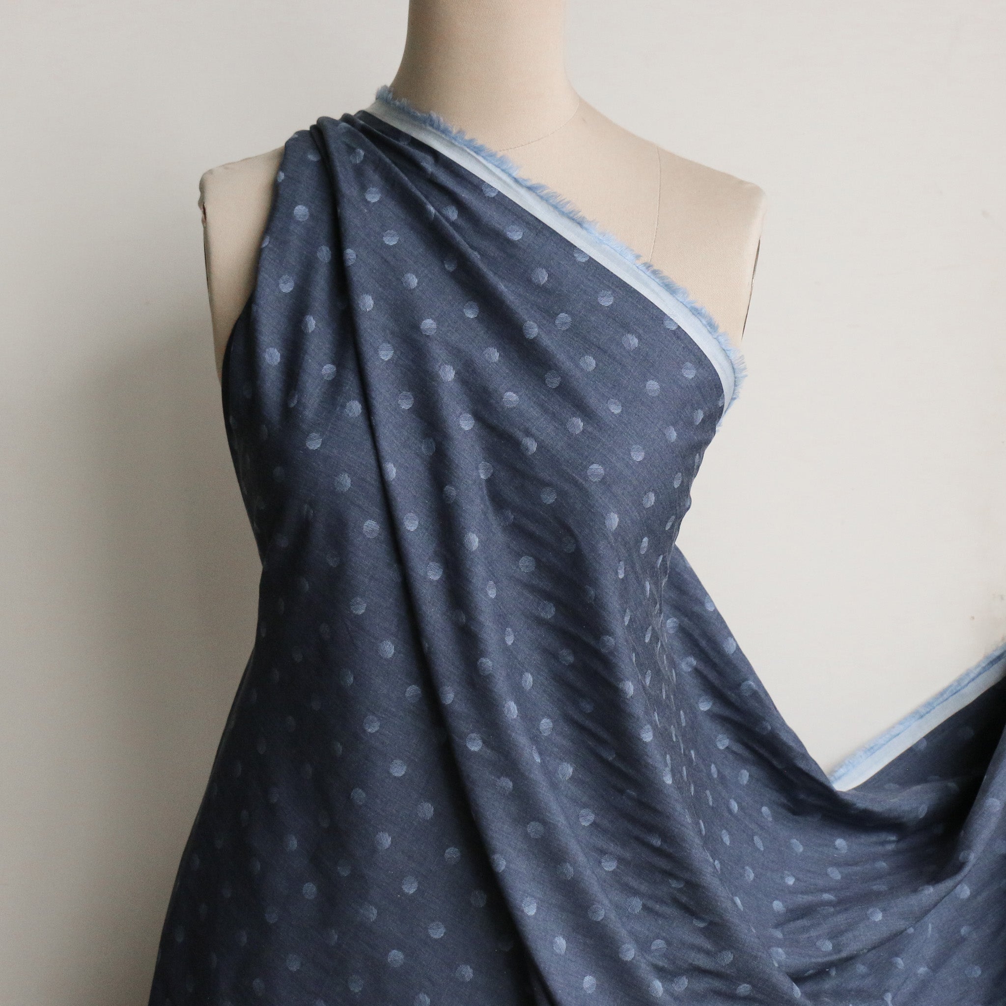 Italian blue/black yarn-dyed jacquard spot 100% cotton shirting