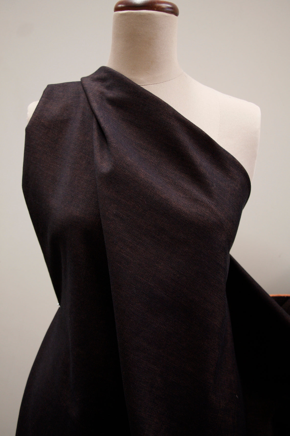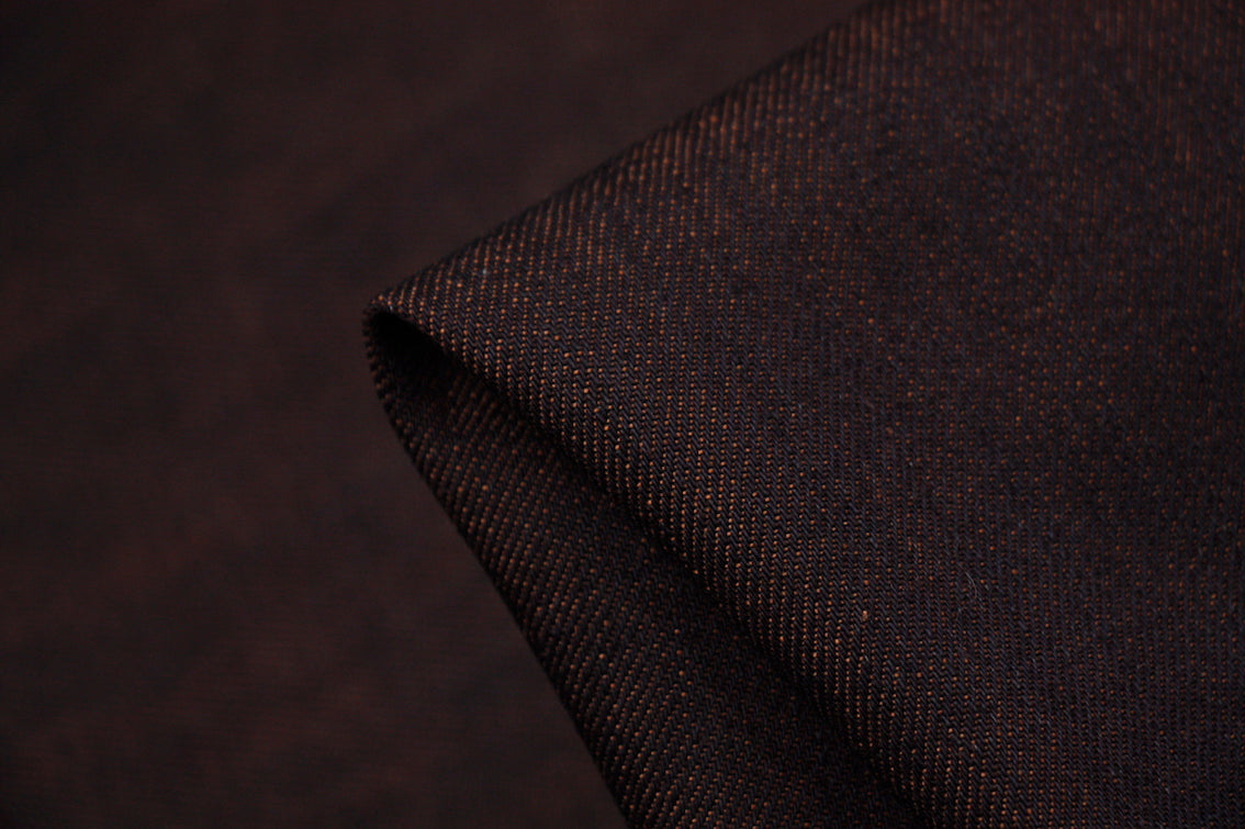 Italian heavy weight black/terracotta brown 100% cotton denim. Width: 150cm