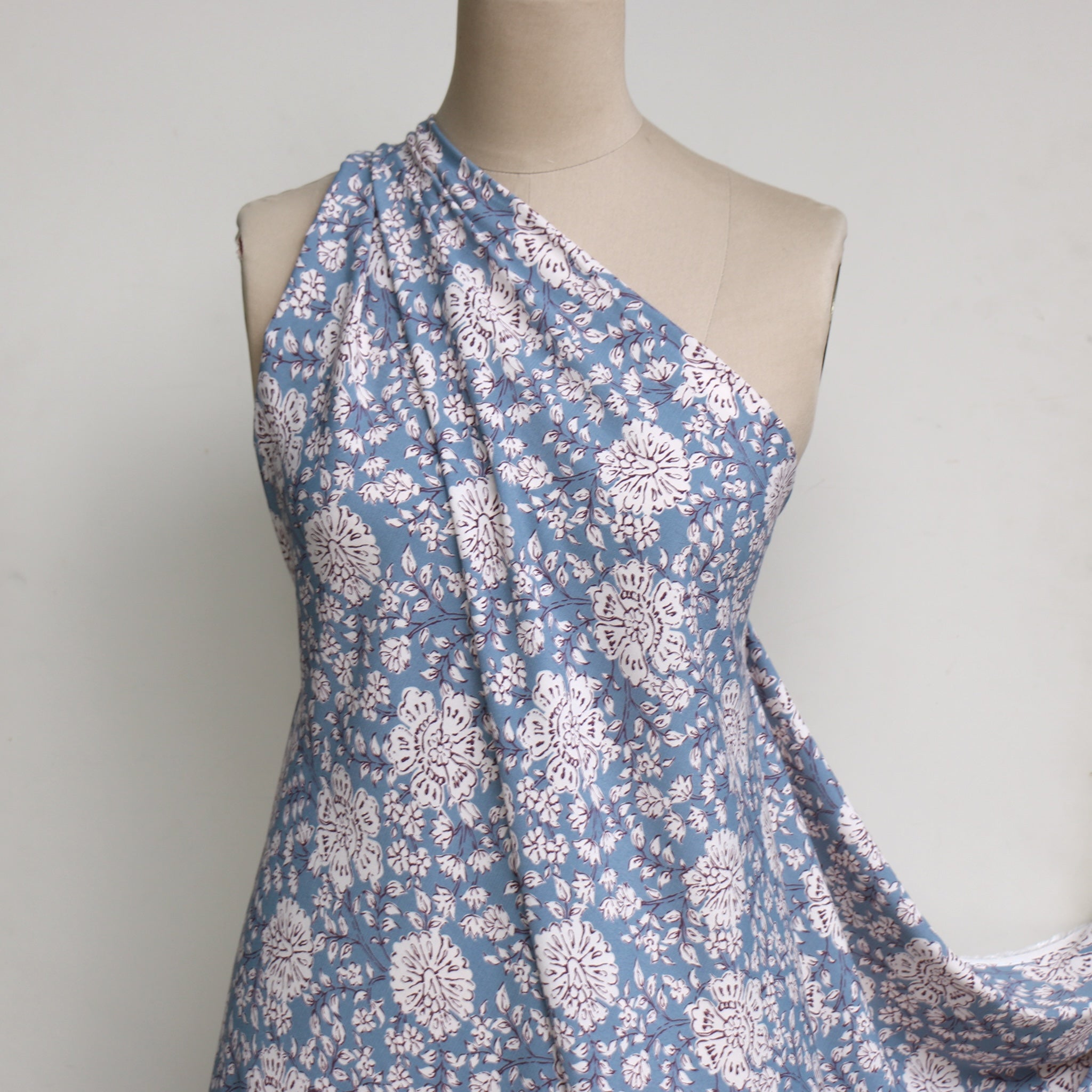 Wedgewood blue/floral 100% viscose