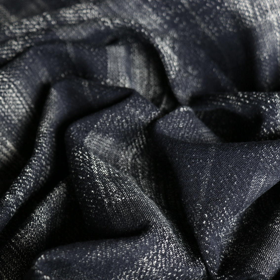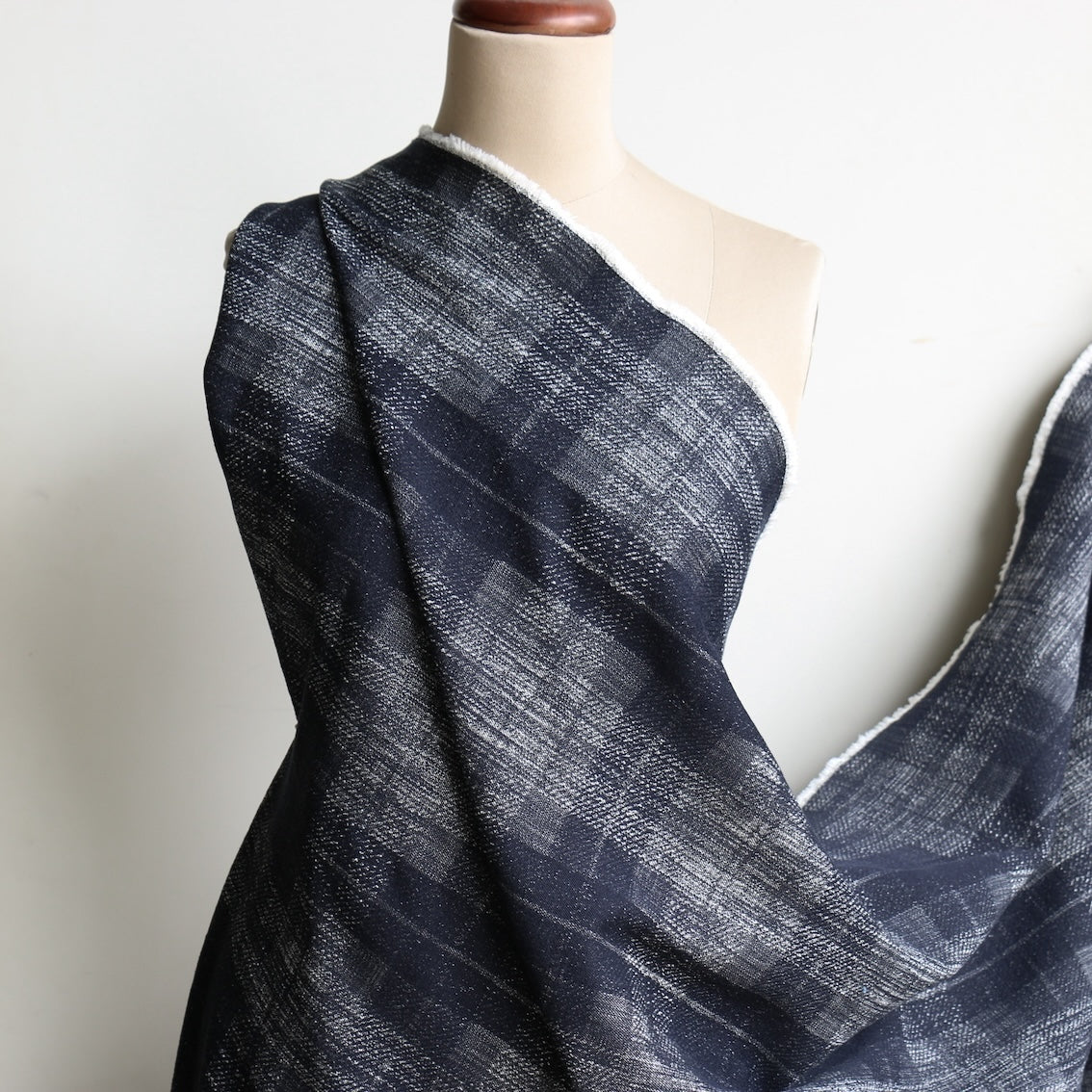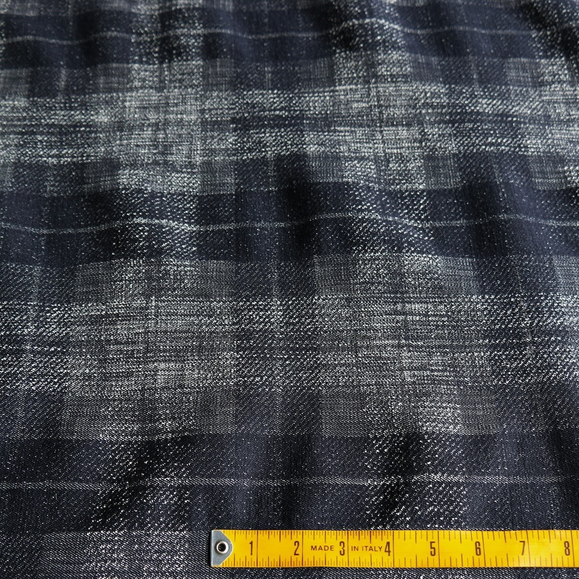 Italian dark navy blue large checked 100% cotton jacquard denim