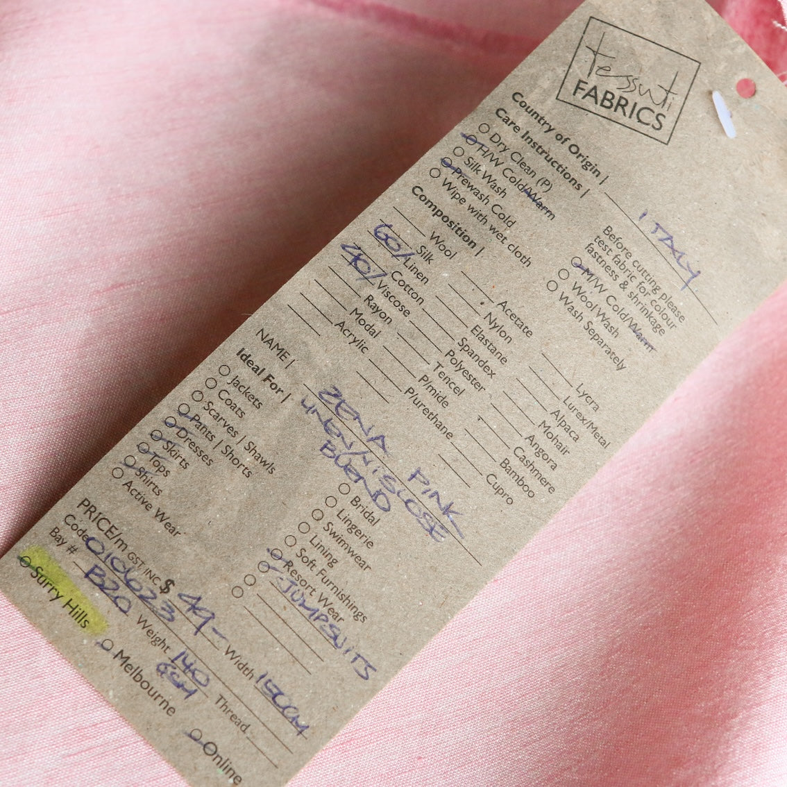 Italian pale pink 60% linen 40% viscose