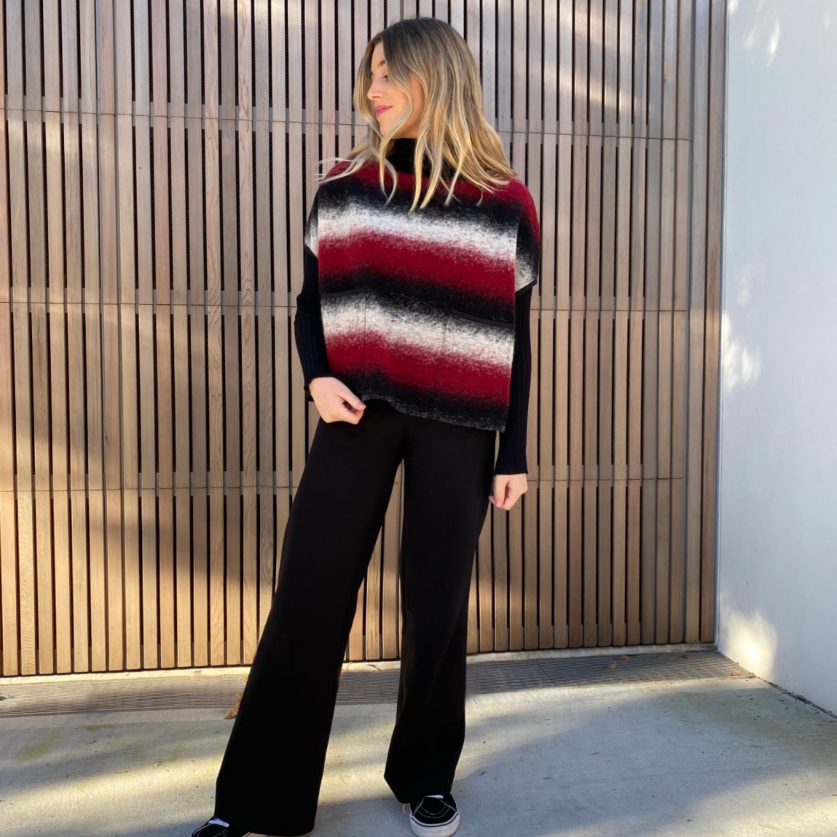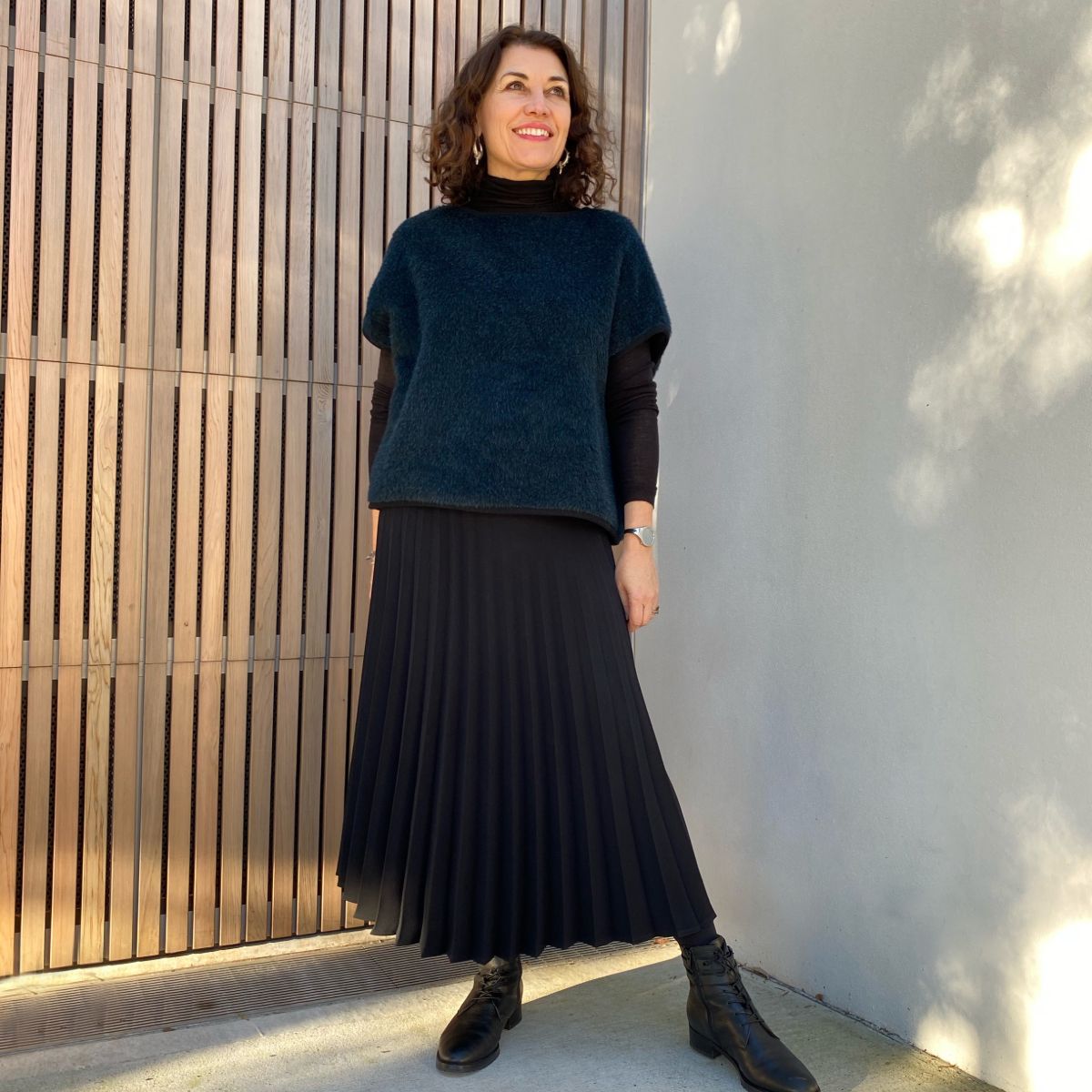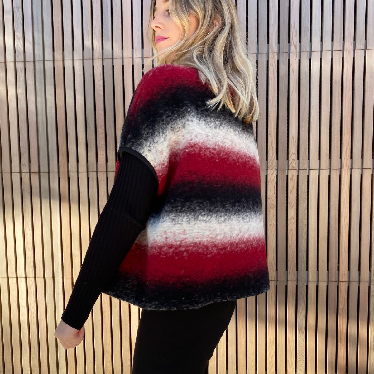 The Amara Vest is a loose, boxy vest/top and the perfect layering piece to add colour, contrast or texture to a relaxed look. Style features include drop shoulders, patch pockets and a wide neckline. View A has overlapped and raw edges for a super quick and satisfying sewing project. View B has bound edges for extra interest and more fabric options.