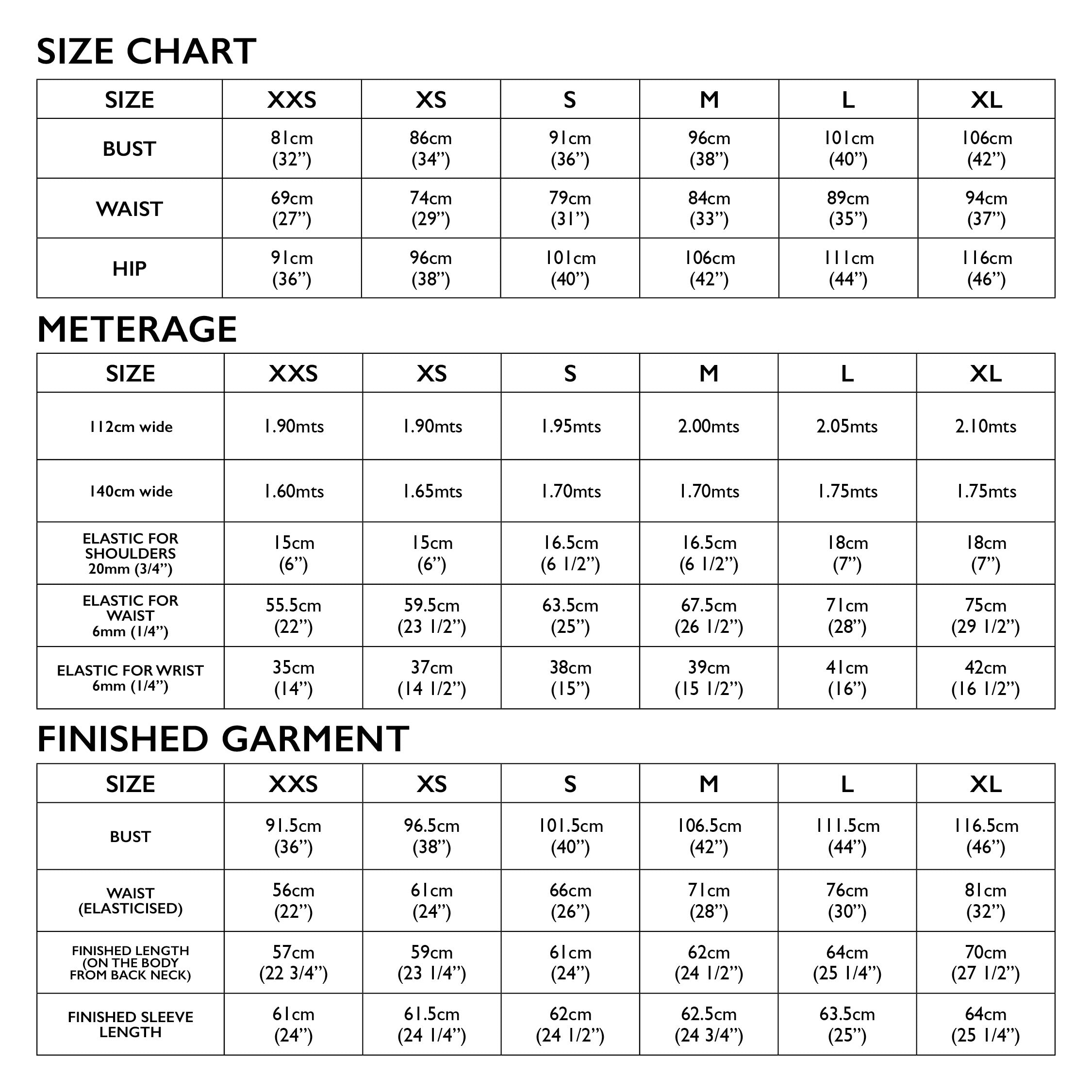 Recommended fabrics: lightweight linen, cotton poplin, cotton voile, cotton eyelet, silk crepe de chine and viscose