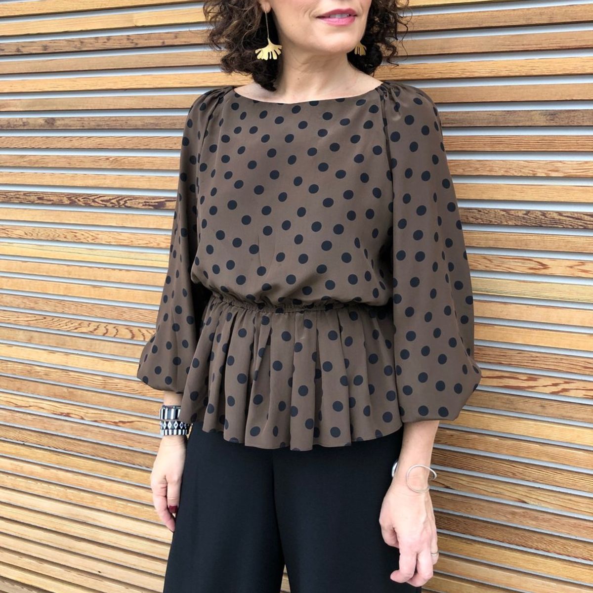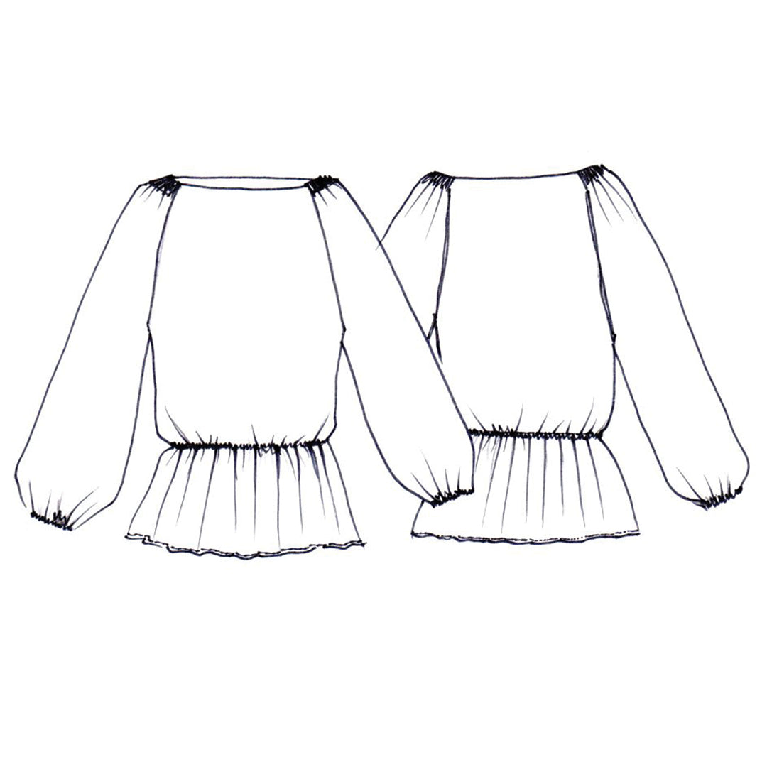 The Hilary Top is a pretty, peasant style that features a bloused bodice, pleated peplum, boat neckline, gathered waist and sleeves with gathered wrists. The perfect item to up, it can be worn with pants, shorts or skirts.