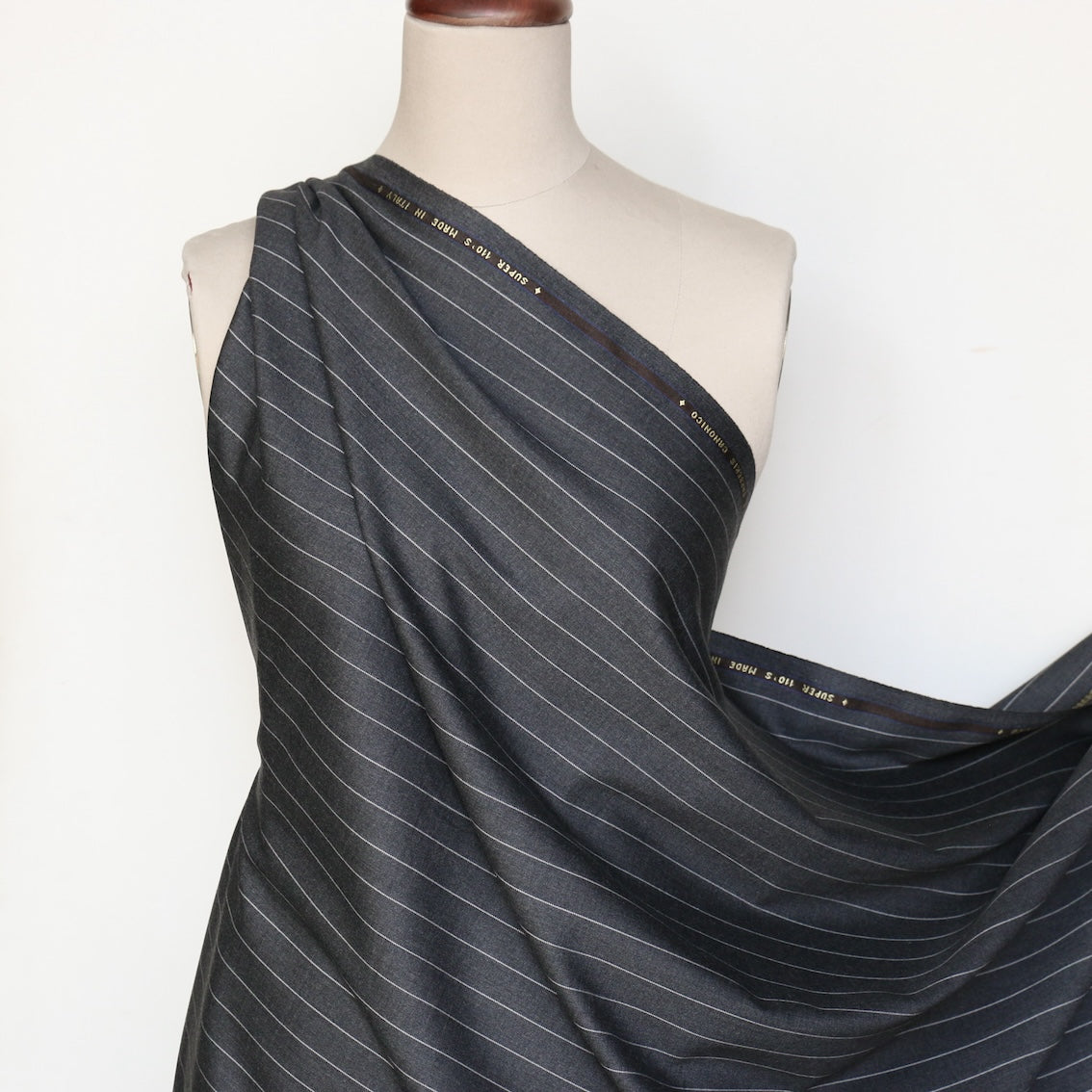 Italian super 110s charcoal/white pinstriped 100% wool suiting