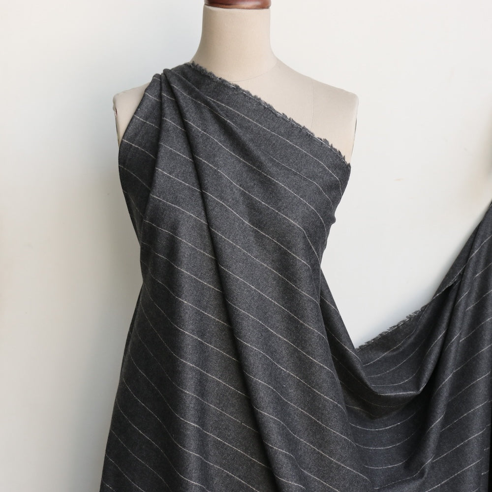 Italian charcoal/white pinstriped 55% wool 43% polyester 2% elastane stretch woven