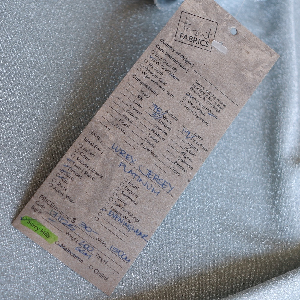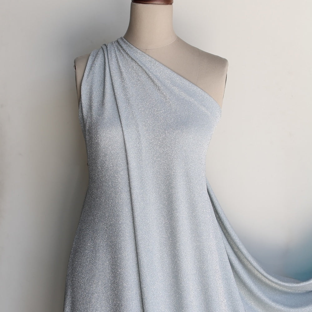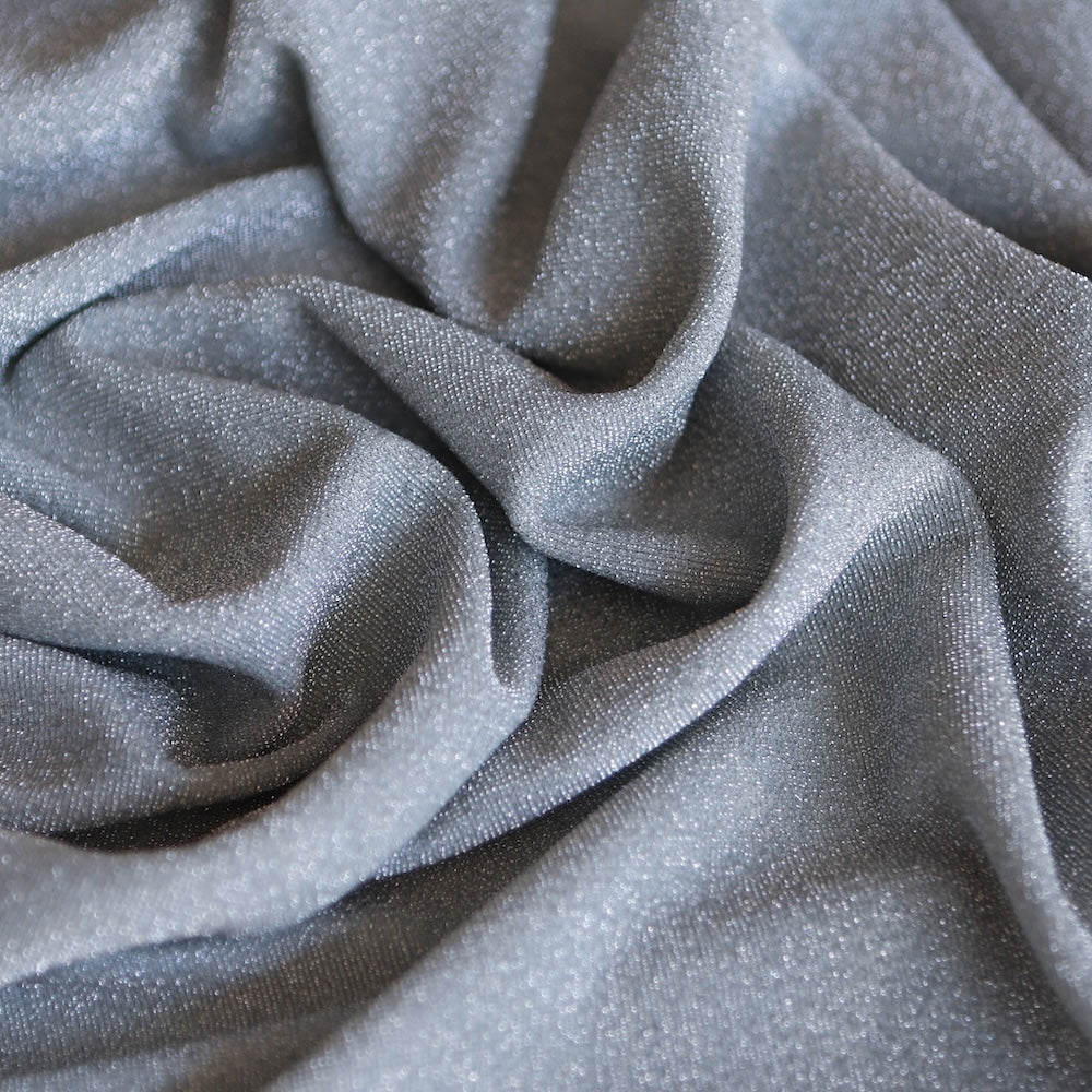 Grey/silver metallic 78% nylon 19% lurex 3% elastane knit