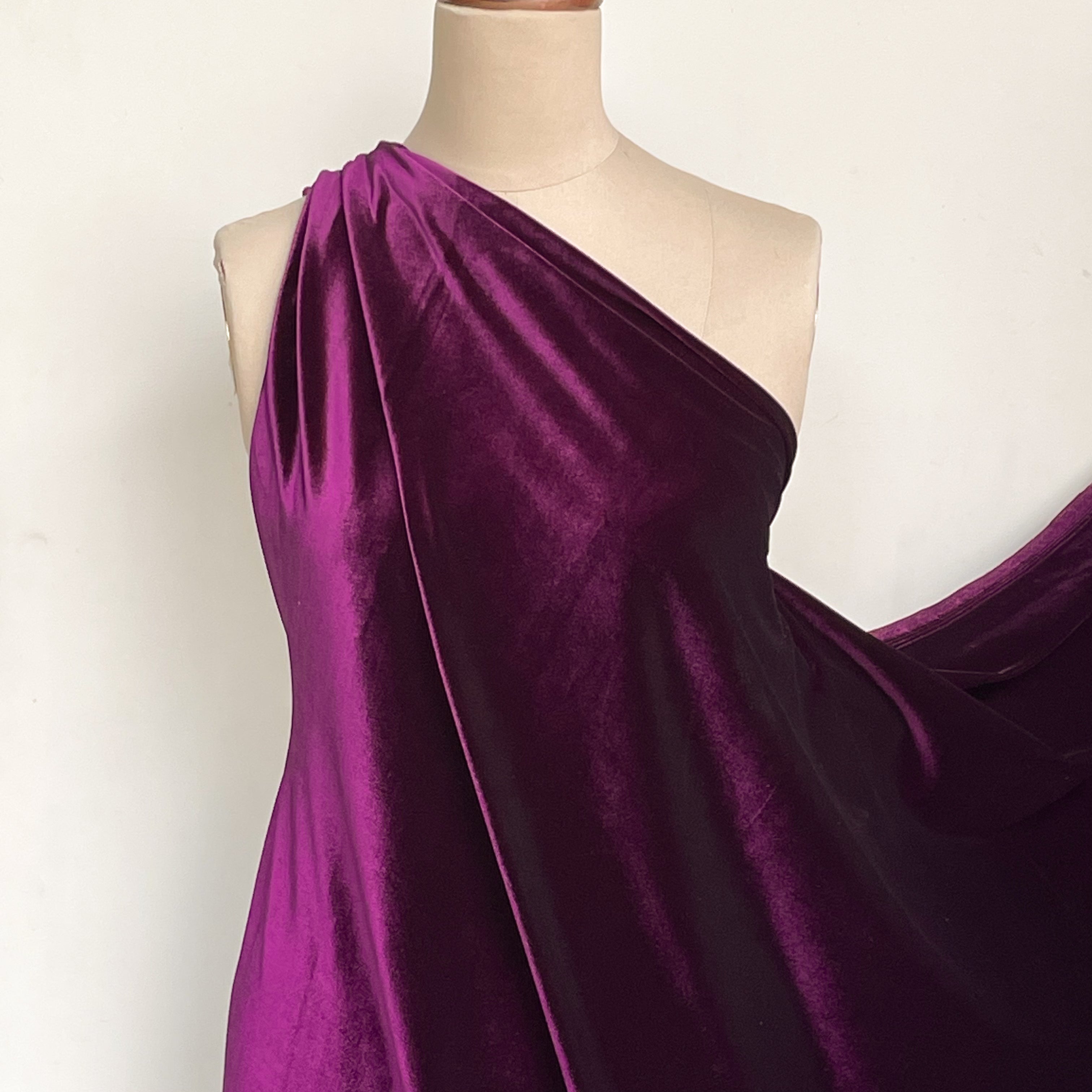 Grape 90% polyester 10% spandex stretch velvet jersey