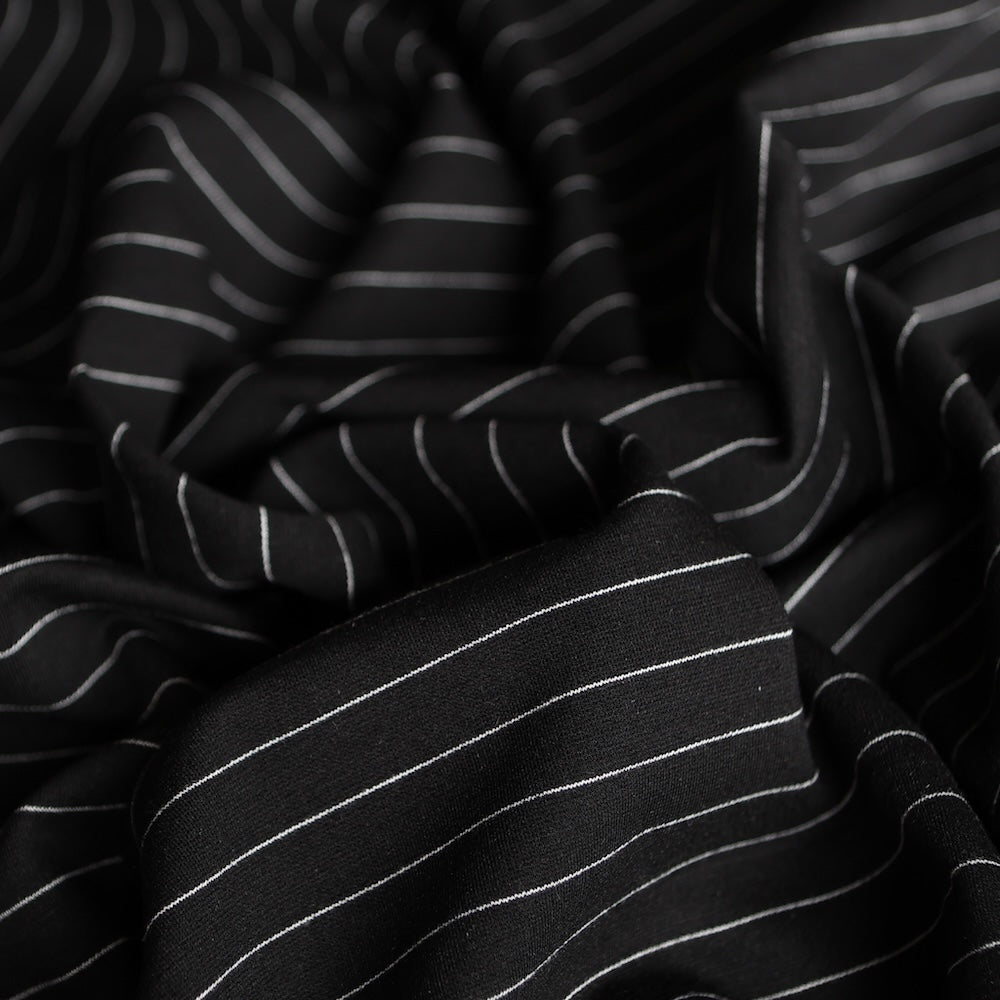 Black/ivory fine stripe 62% viscose 26% nylon 8% elastane 4% polyester ponti knit
