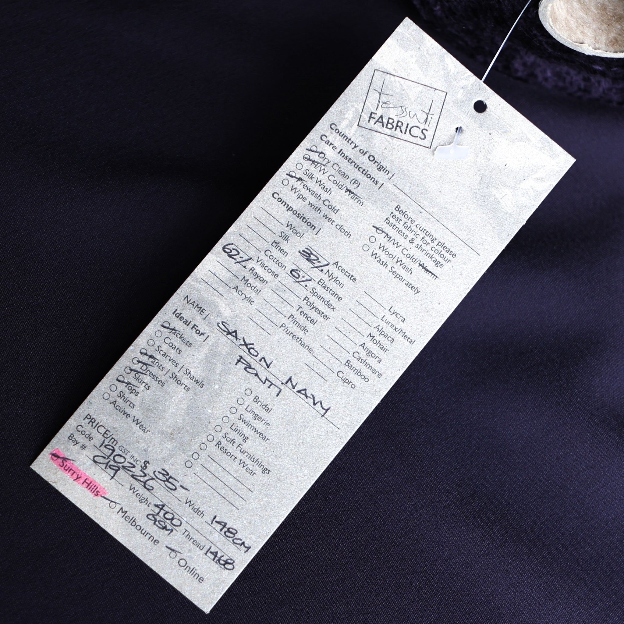 Dark navy 62% viscose 32% nylon 6% elastane ponti knit