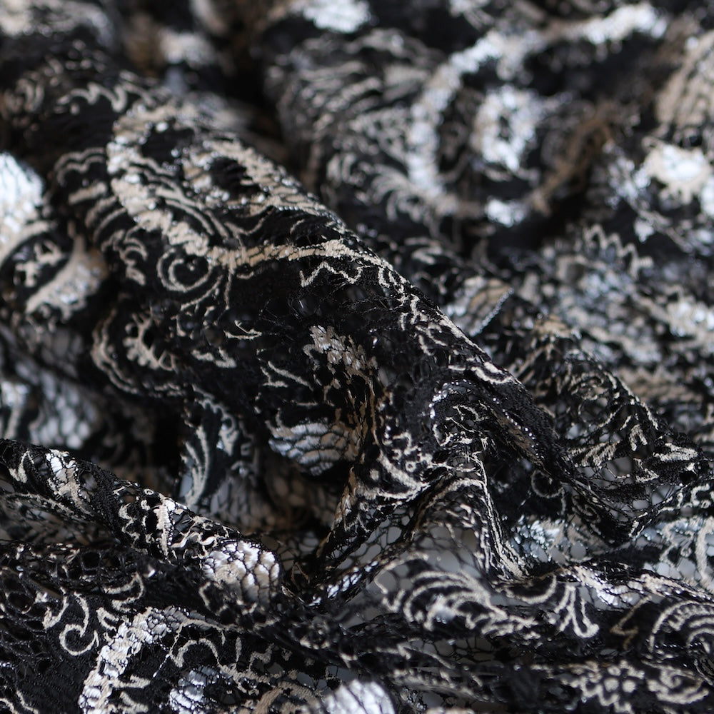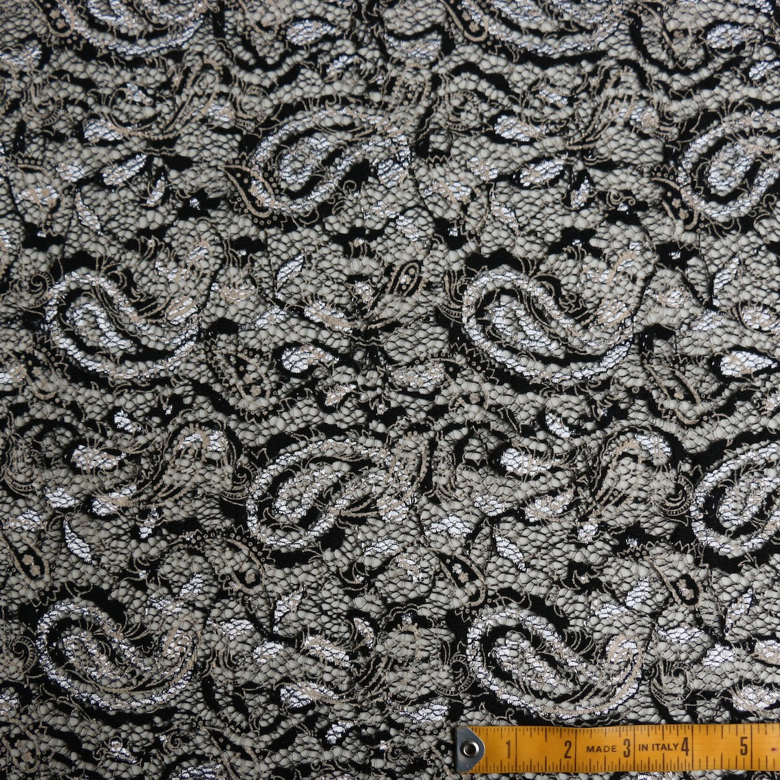 Black/ silver grey paisley print viscose/nylon/polyamide lace