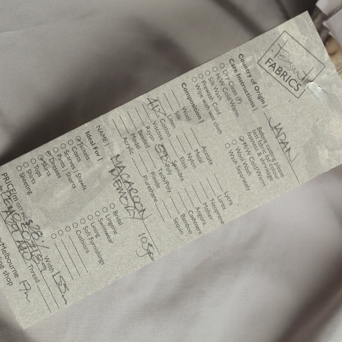Chalk grey 59% polyester 41% cotton.