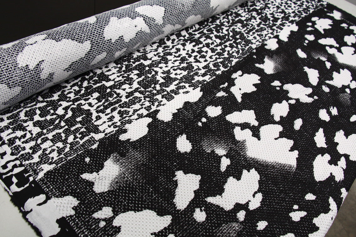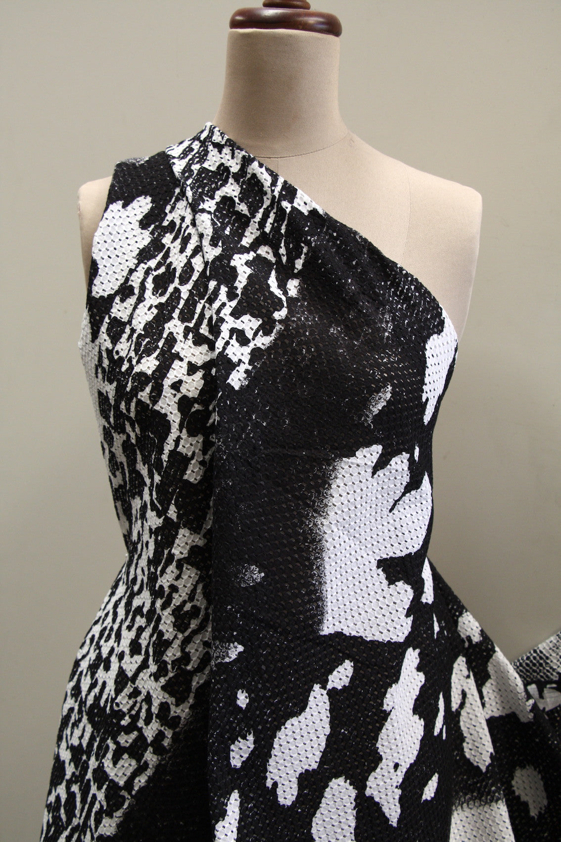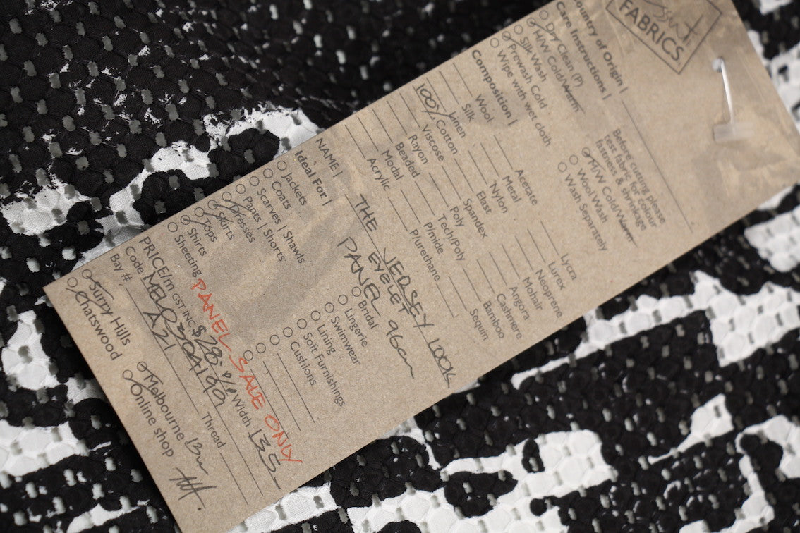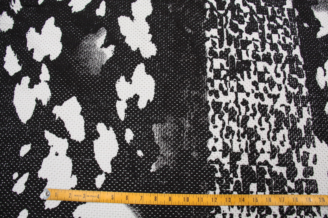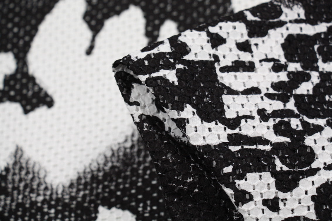 Black/white printed 100% cotton eyelet. Width: 135cm