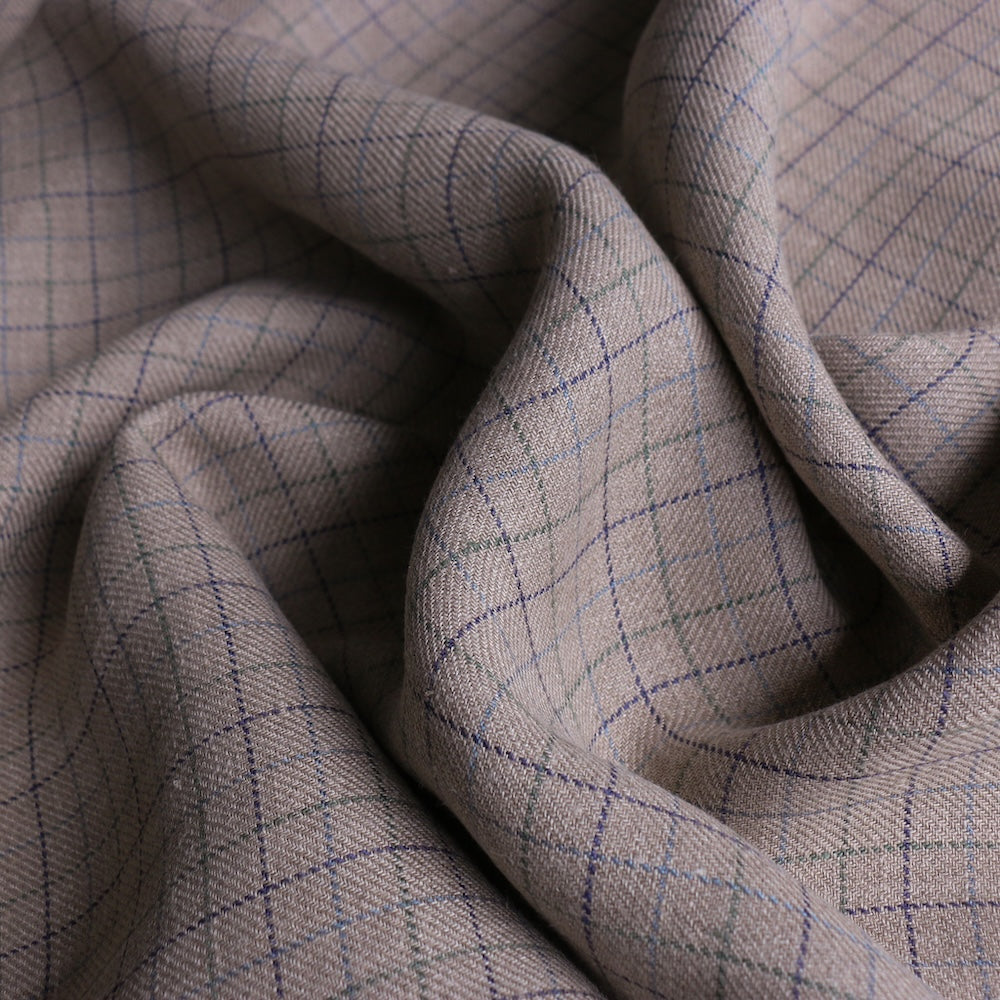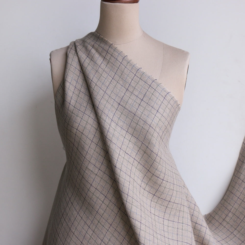 Italian designer string/blue/foam/indigo blue checked 100% linen