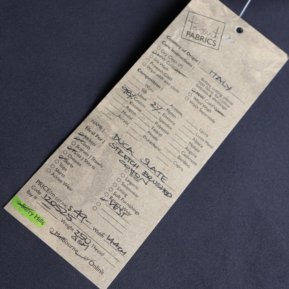 Remnant of Duca Slate - Stretch Brushed Cotton