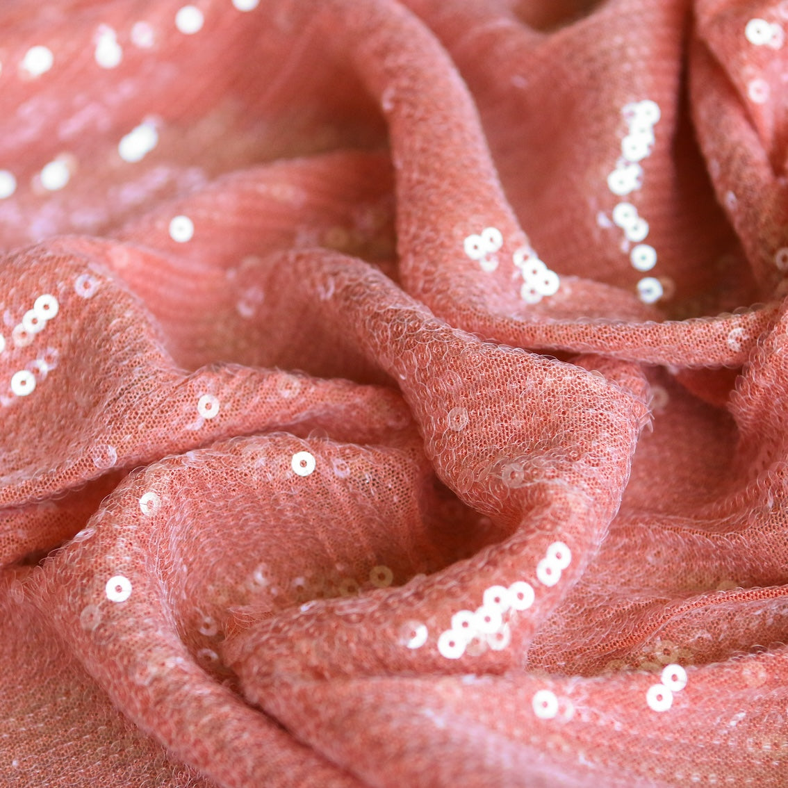 Peach/clear sequinned stretch mesh 95% polyester 5% elastane.
