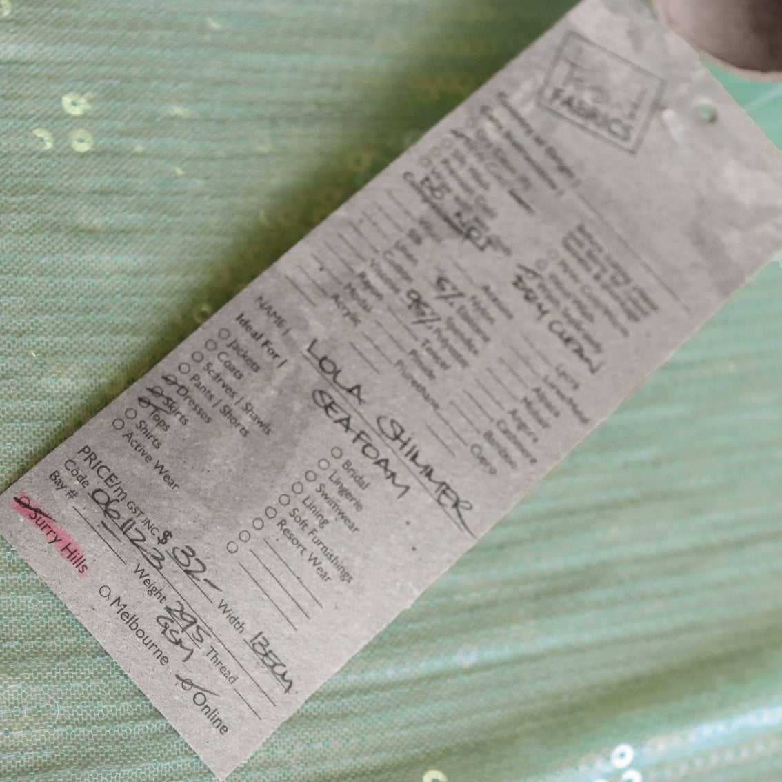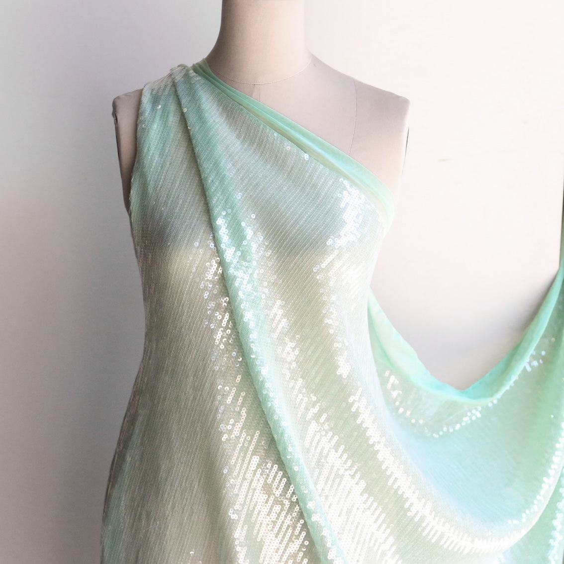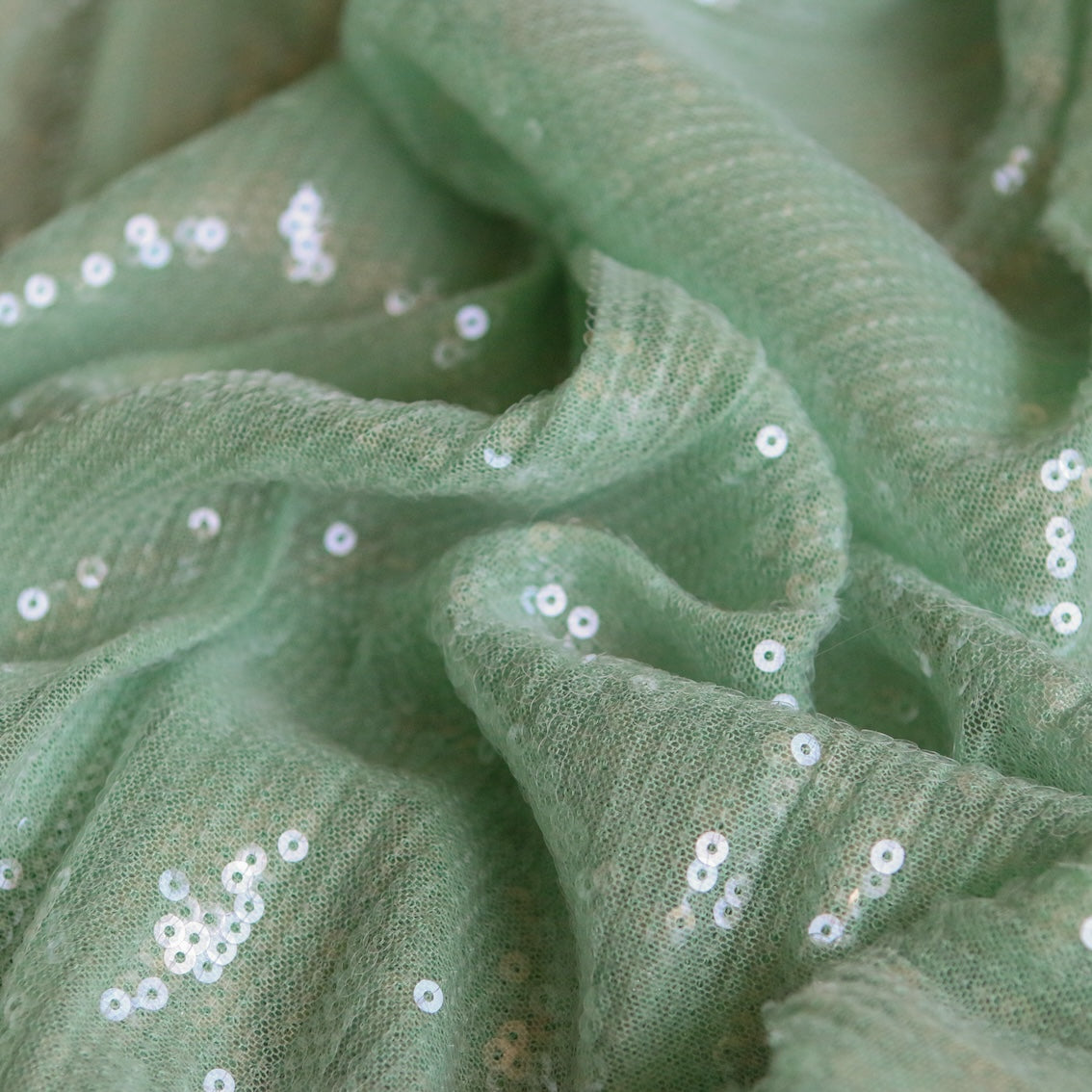 Sea green/clear sequinned stretch mesh 95% polyester 5% elastane