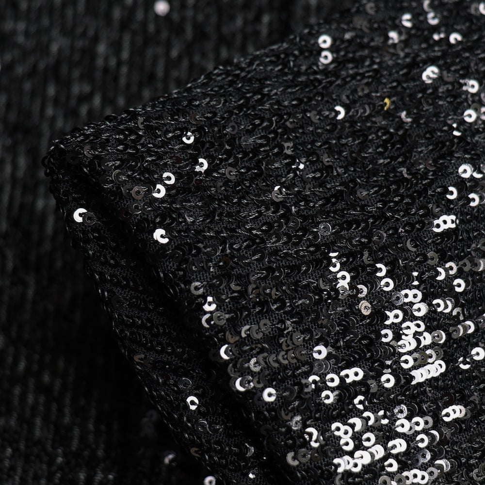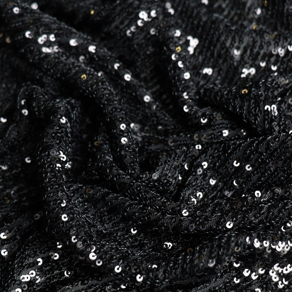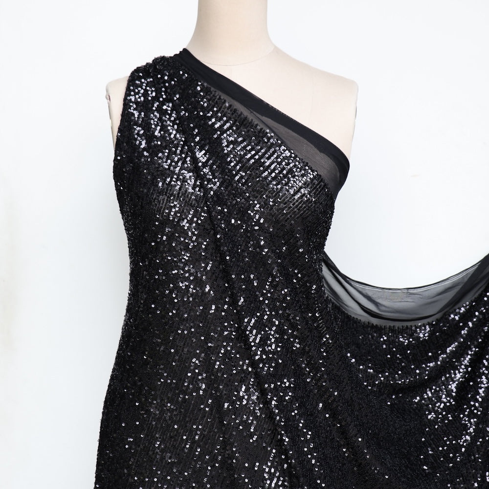 Luna Shiny Black Sequinned Stretch Mesh