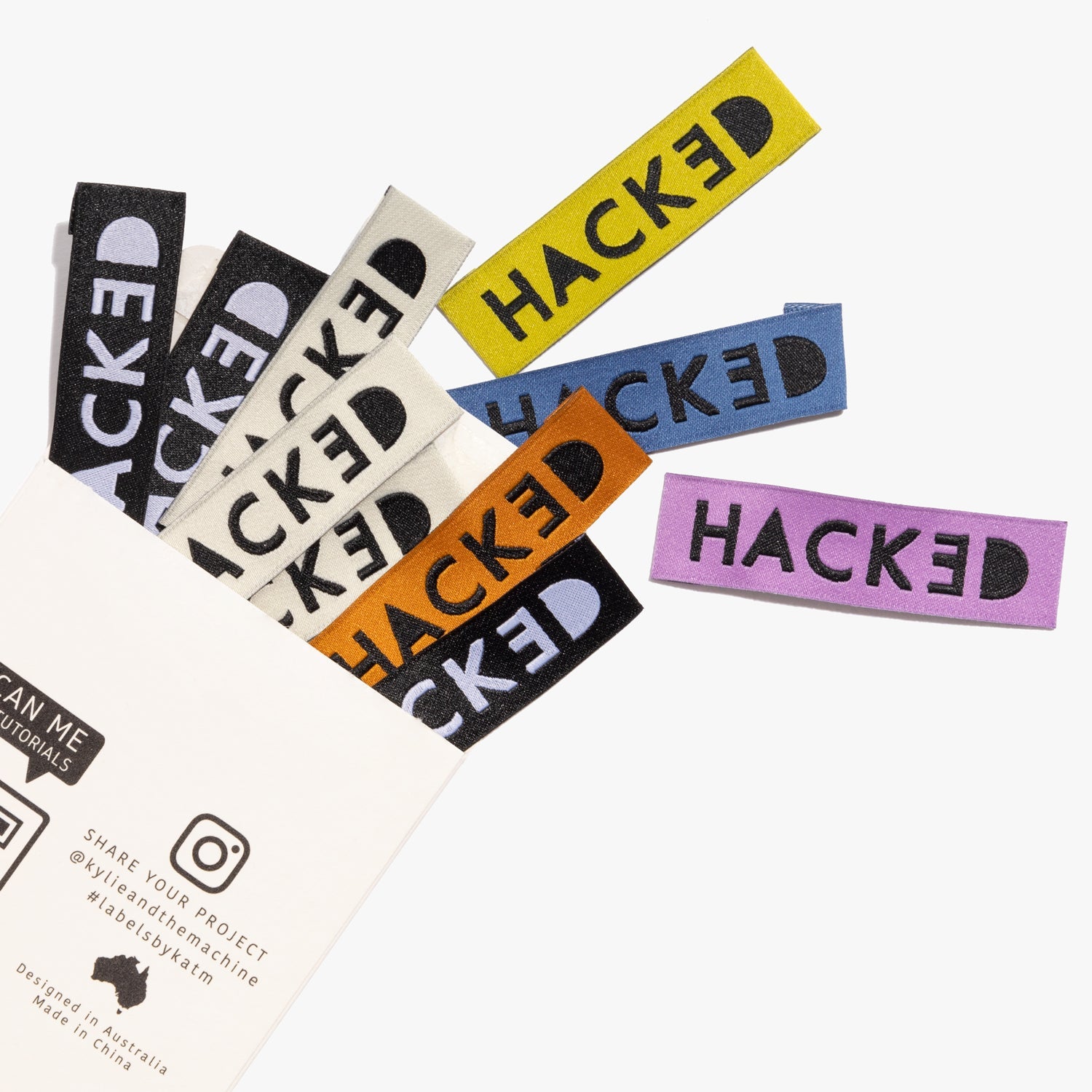 KATM Woven Labels - "Hacked" - printed cotton labels 10 Pack
