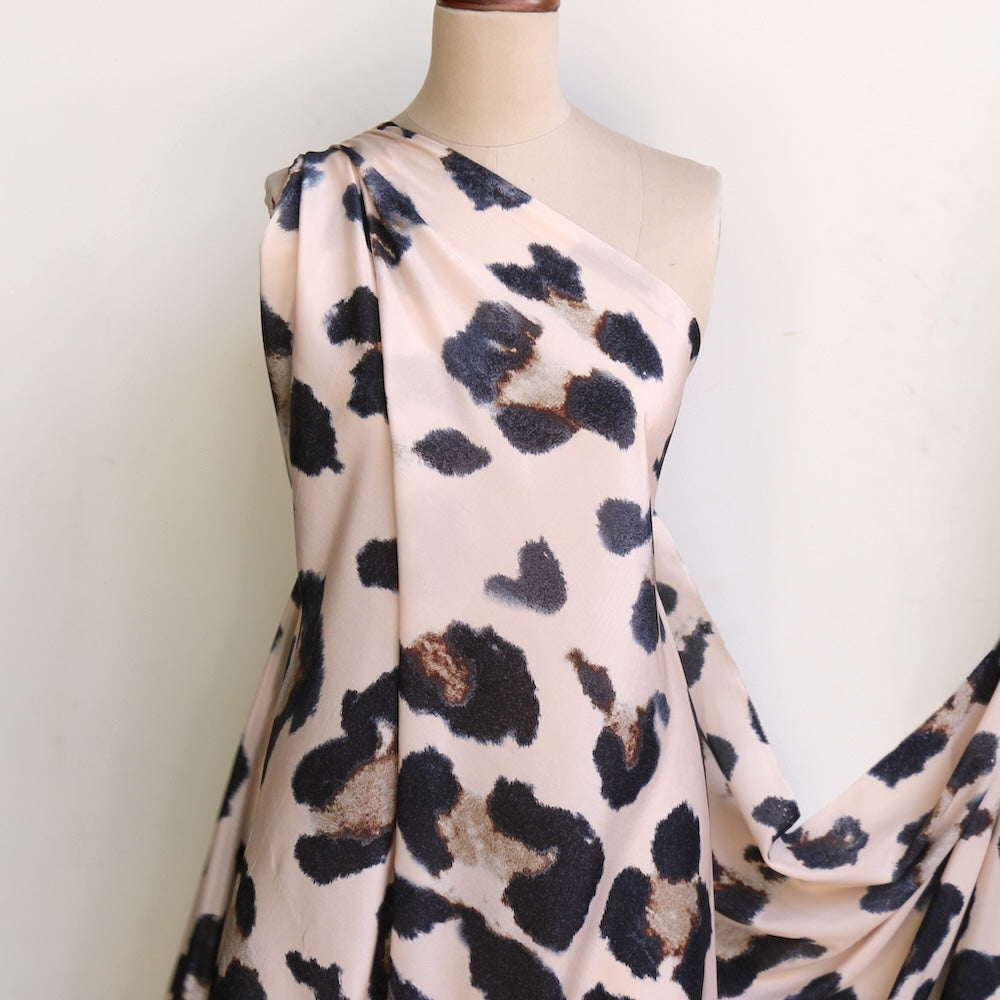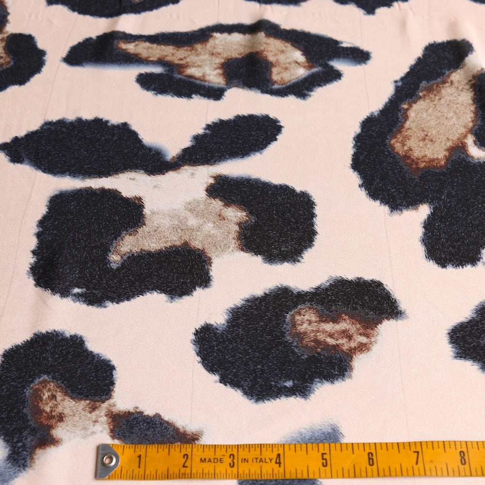 Designer end meringue/black/brown leopard spot printed 100% silk crepe de chine