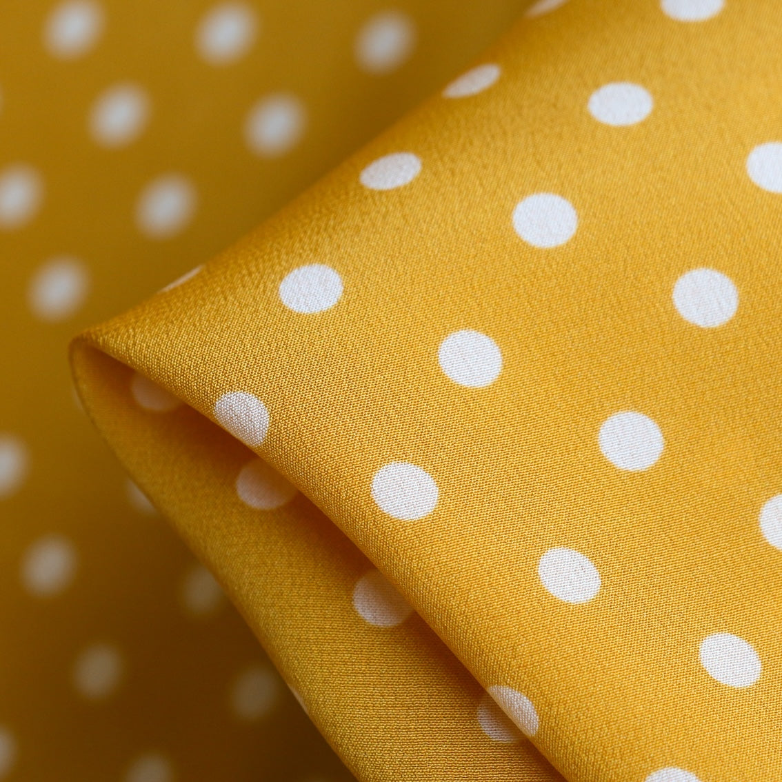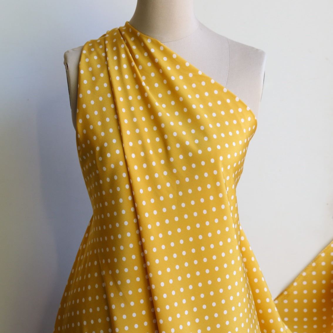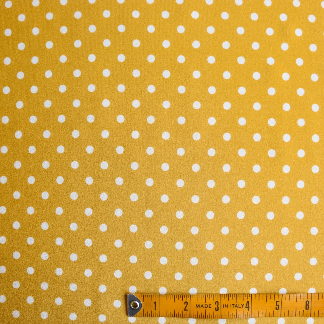Italian designer saffron/white spot printed 100% silk crepe de chine