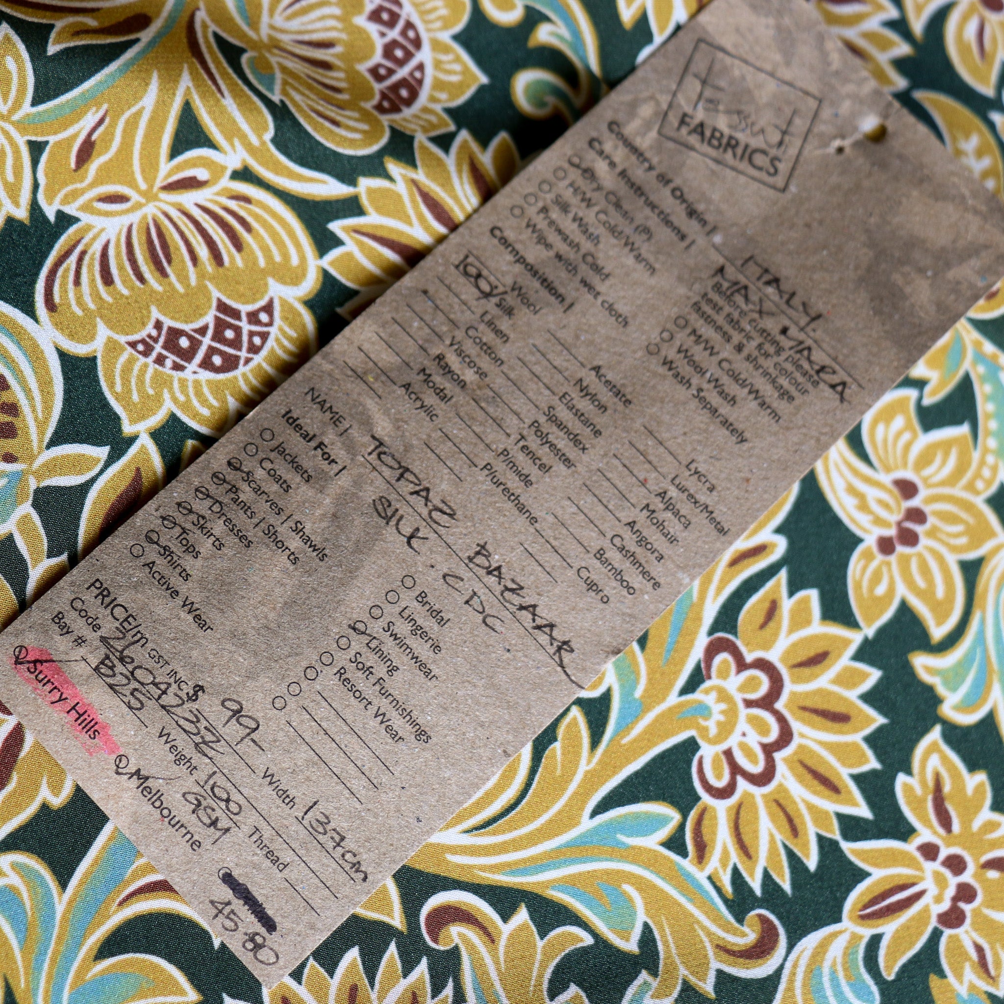 Italian designer bottle/mustard printed 100% silk crepe de chine