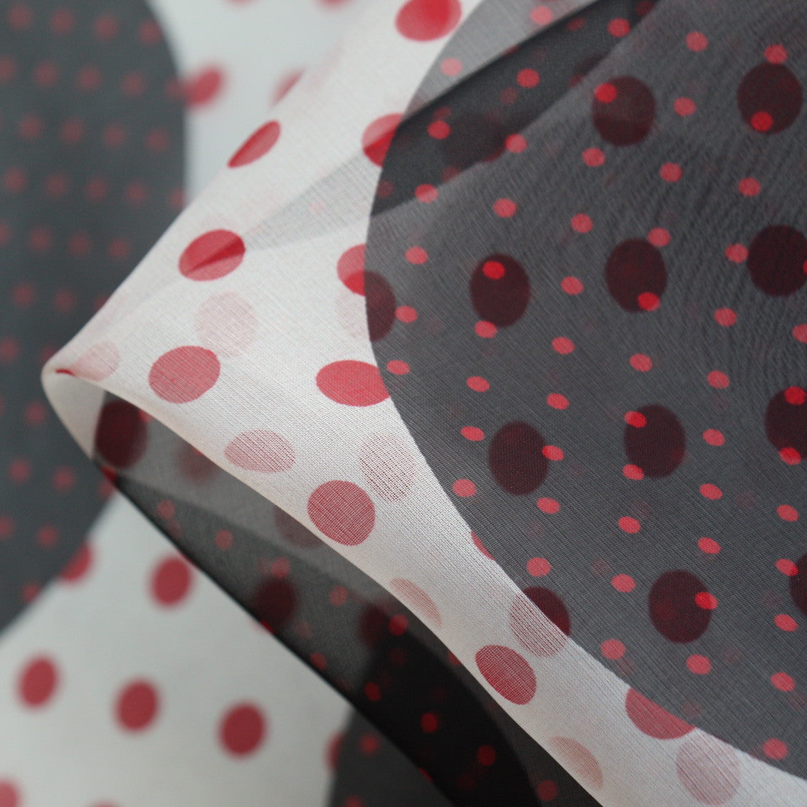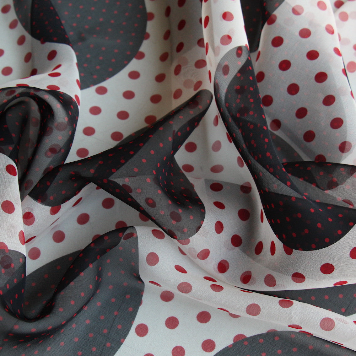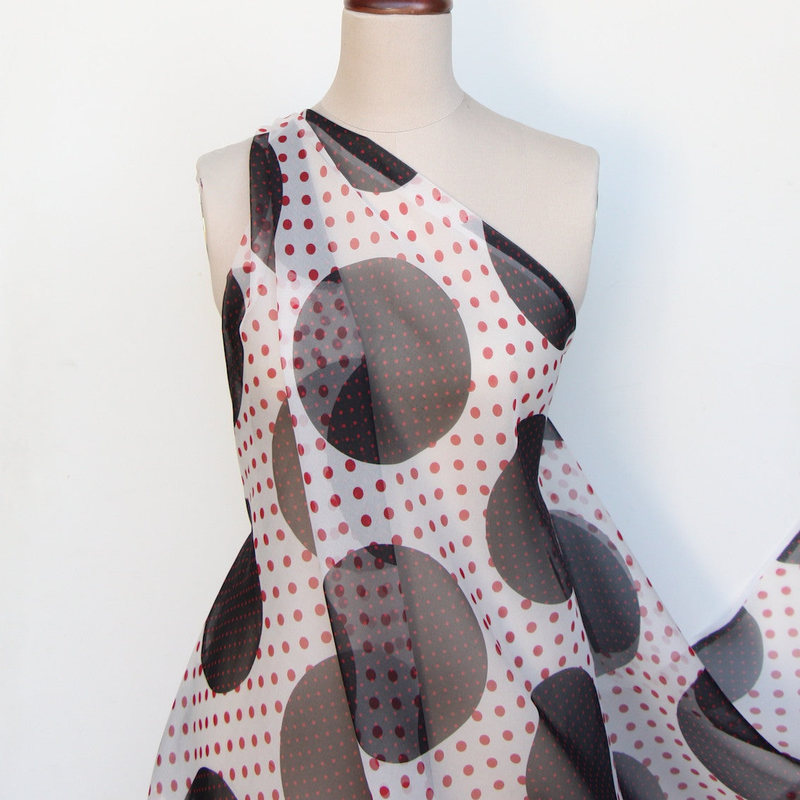 Italian designer Valentino off-white/black/red spot on jumbo spot printed 100% silk organza