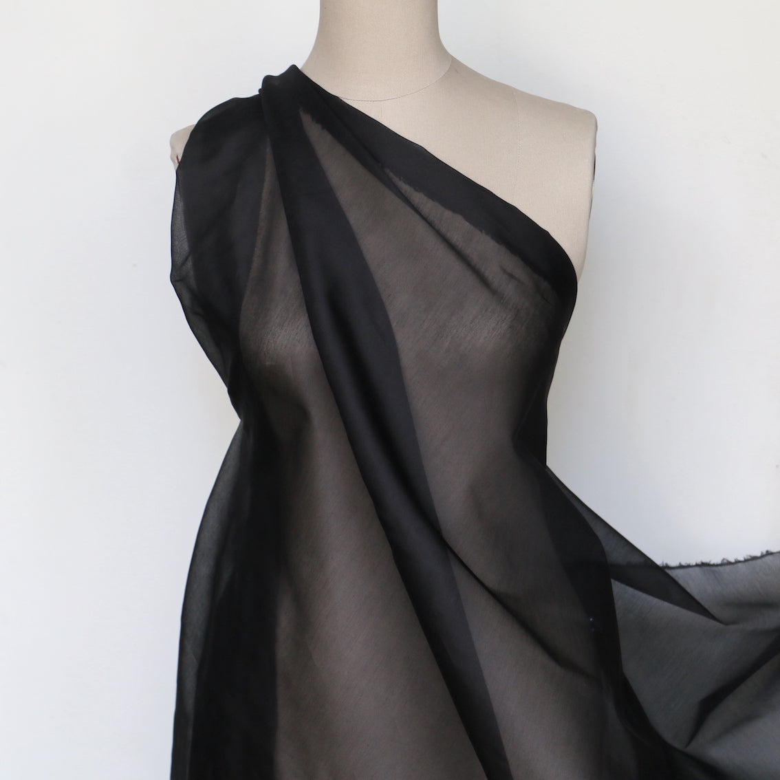 Black 65% silk 35% cotton sheer organza