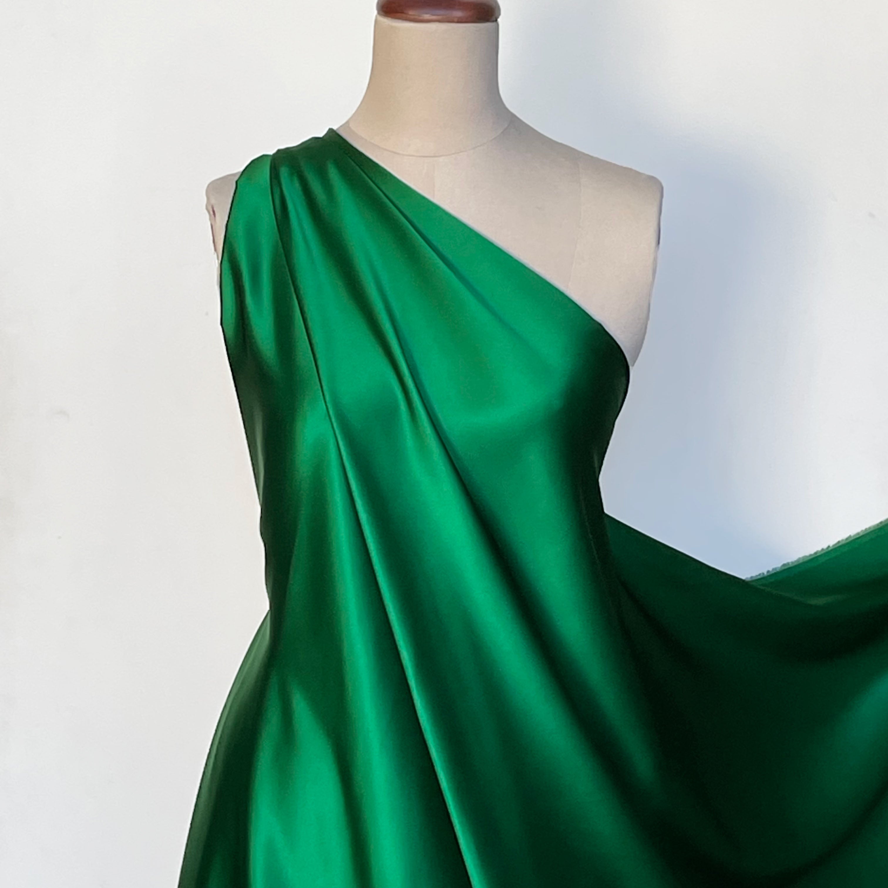 Deep emerald green 100% silk crepe satin