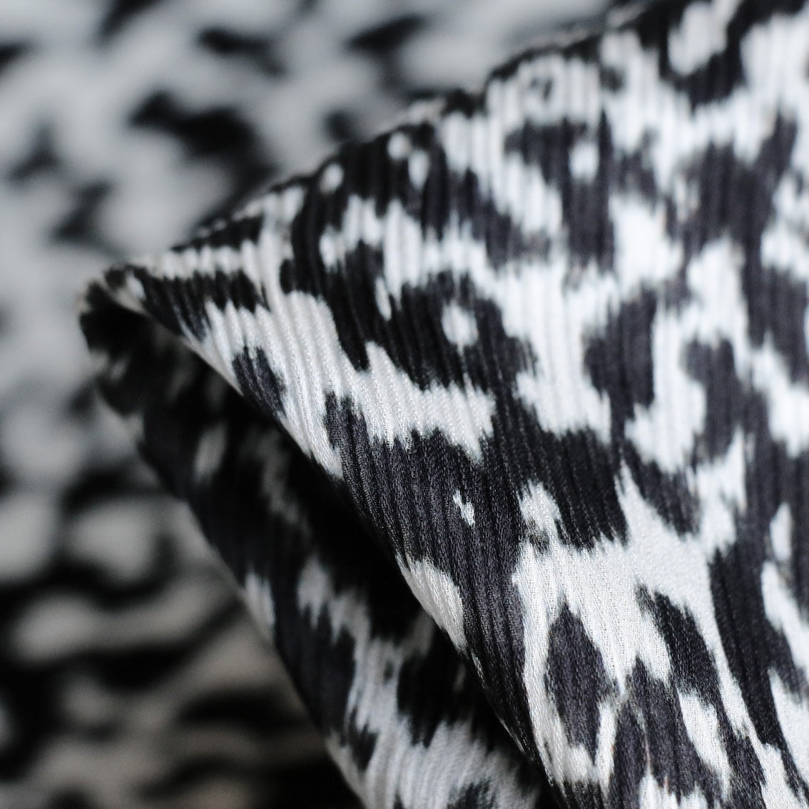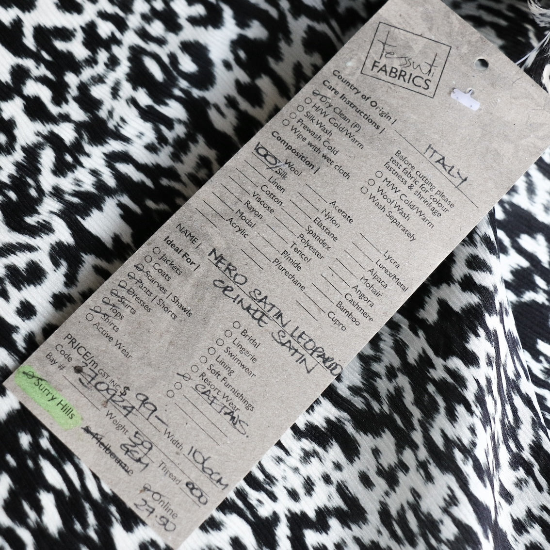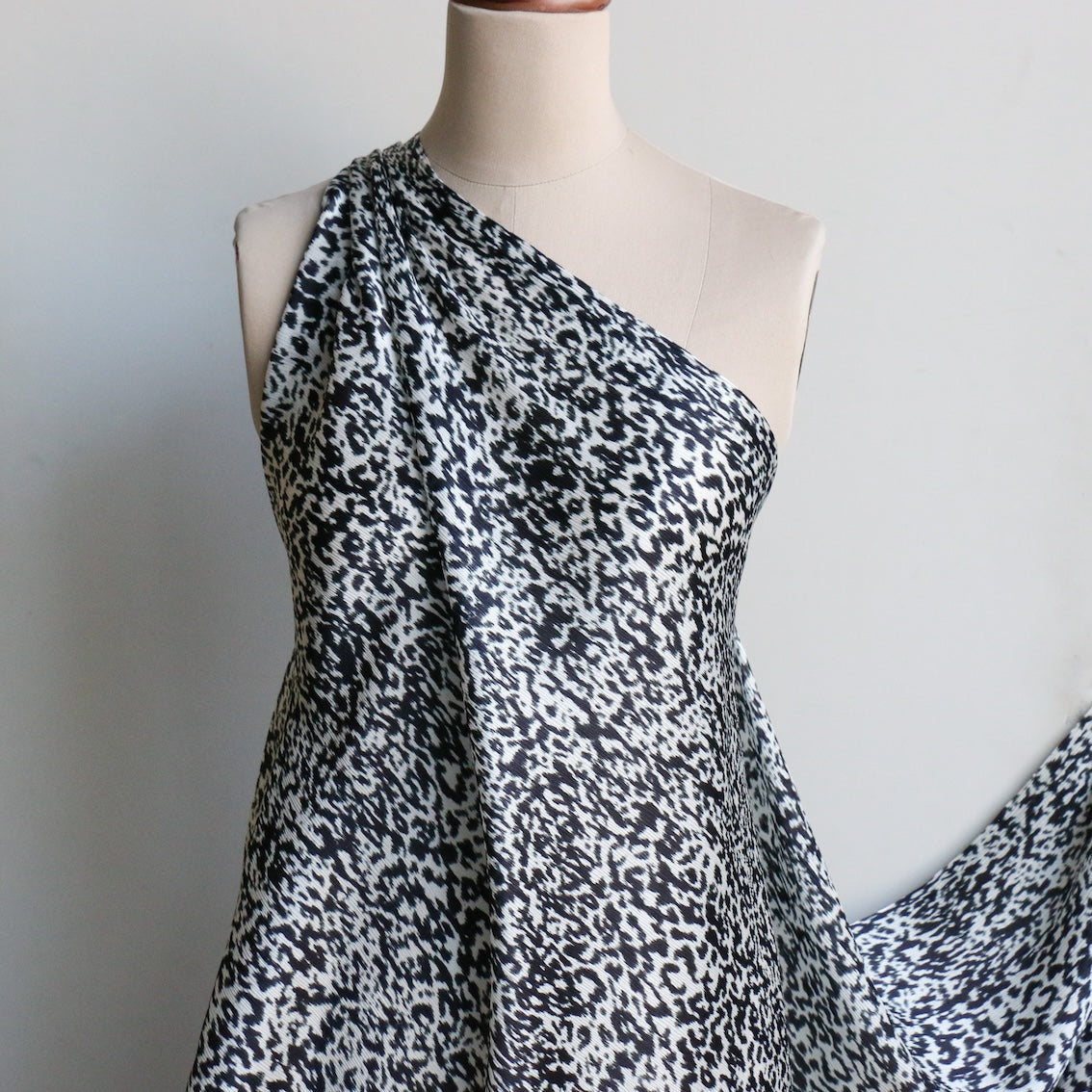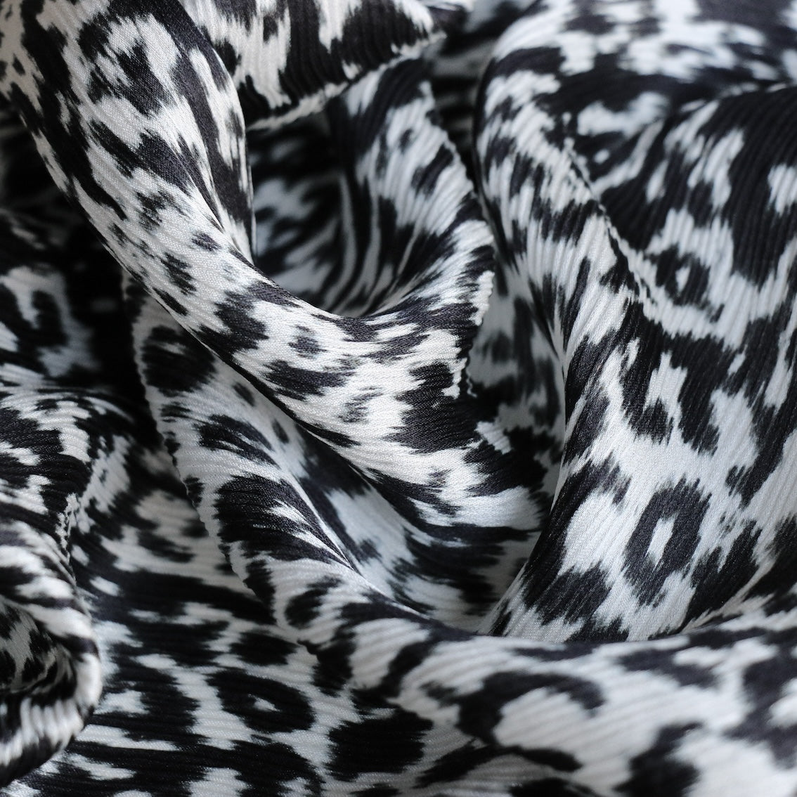 Italian designer black/white blurred leopard spot 100% silk crinkle satin