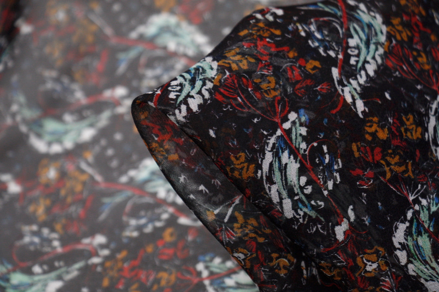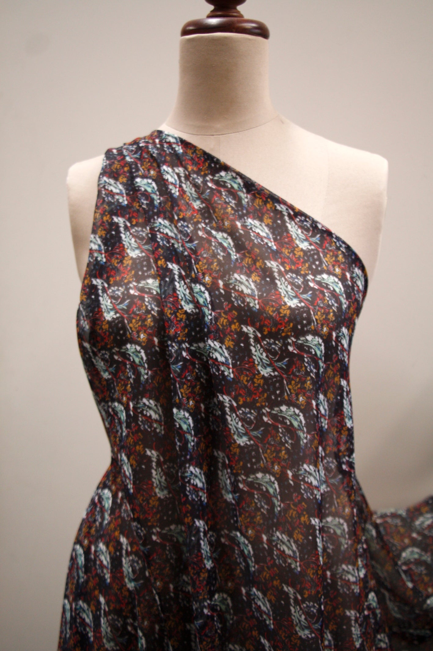 This floral silk georgette is ideal for flowy dresses, skirts, shirts, tops, formalwear and racewear etc.