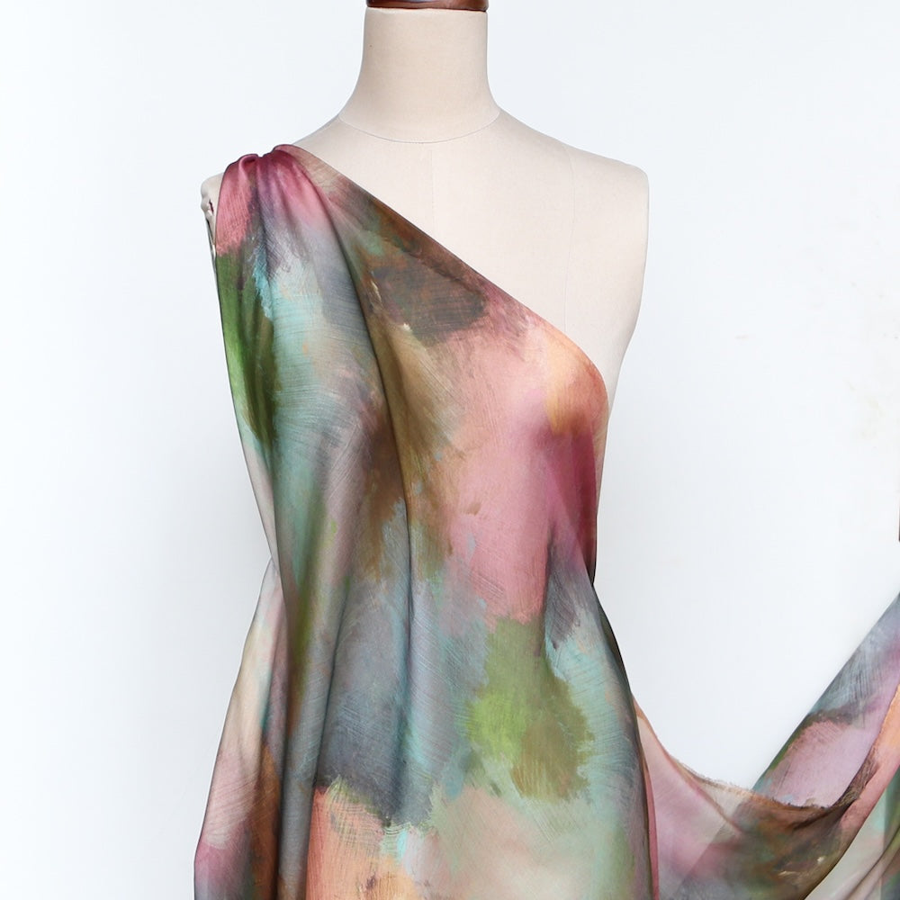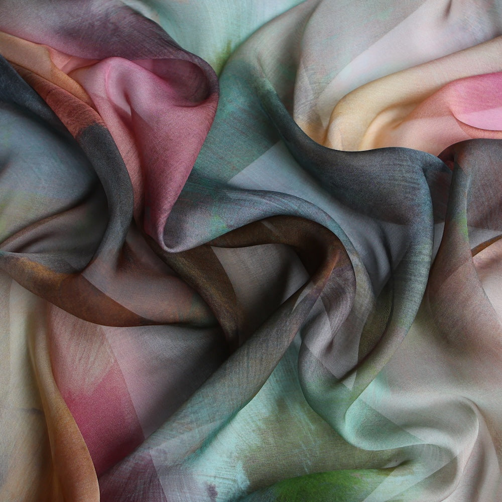 Fern/rose/wedgewood/plum/pond/copper strokes digitally printed 100% silk chiffon