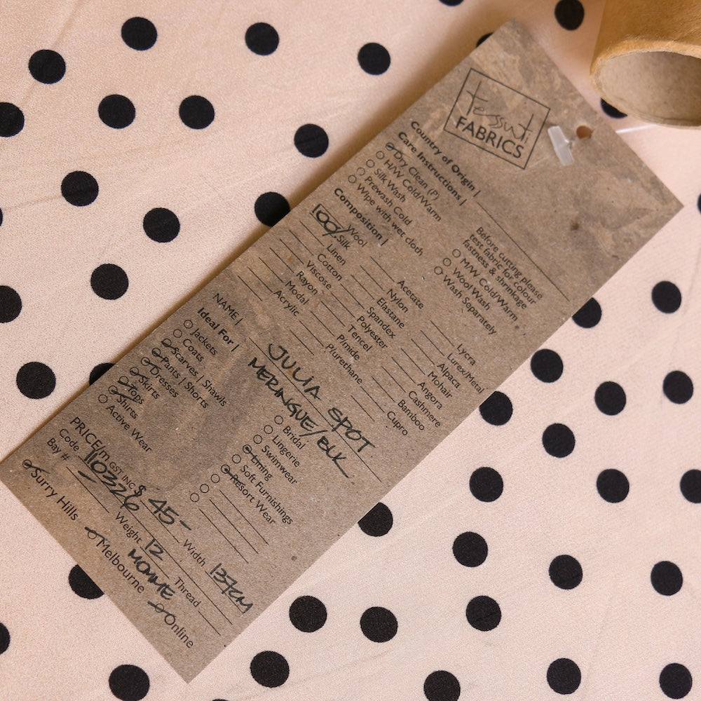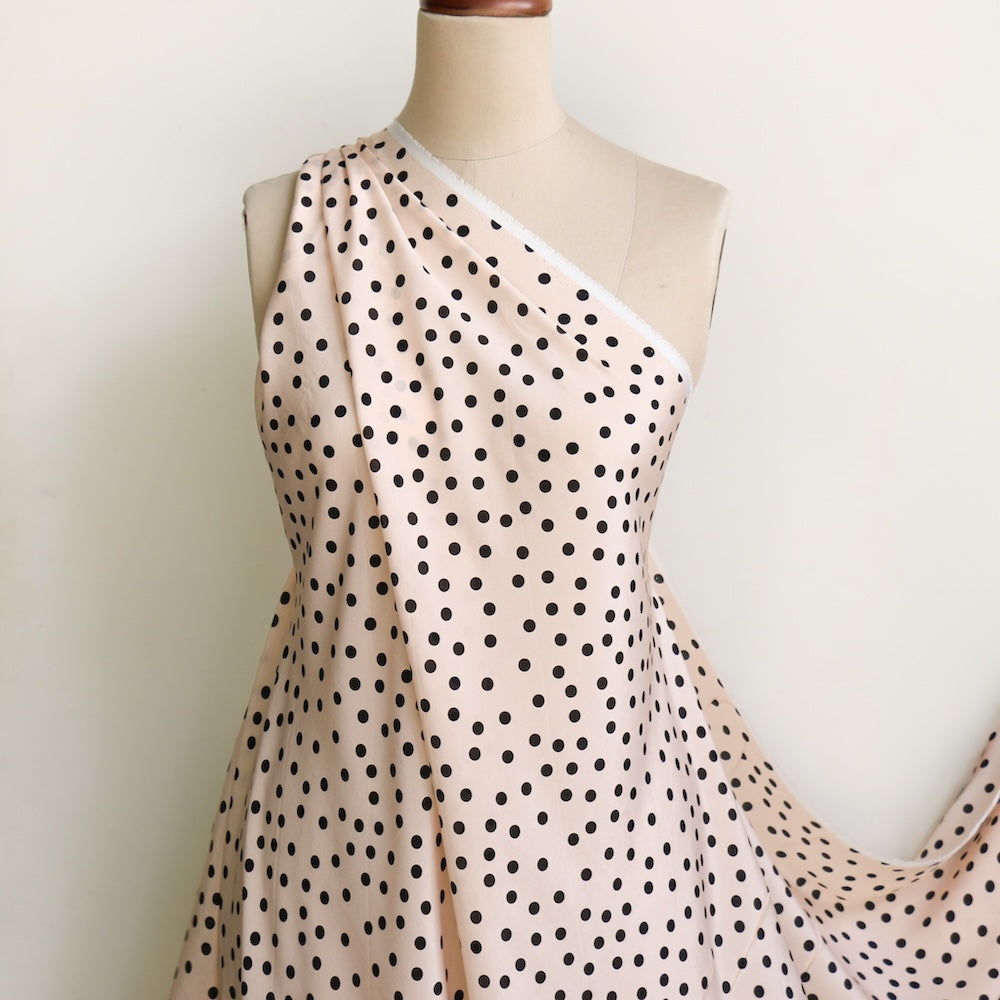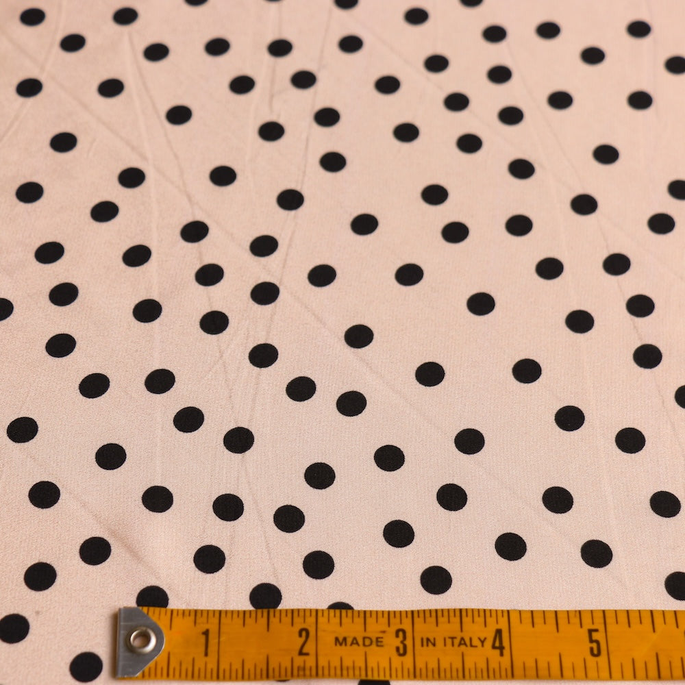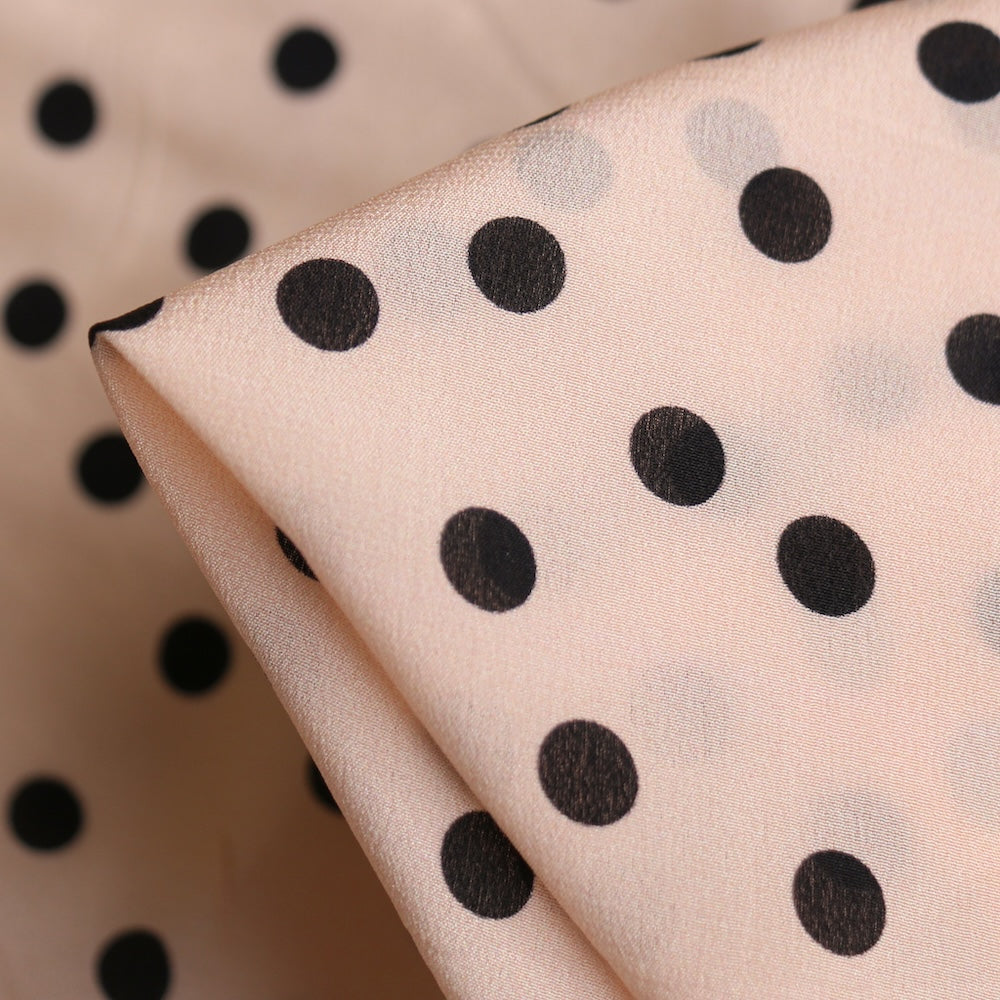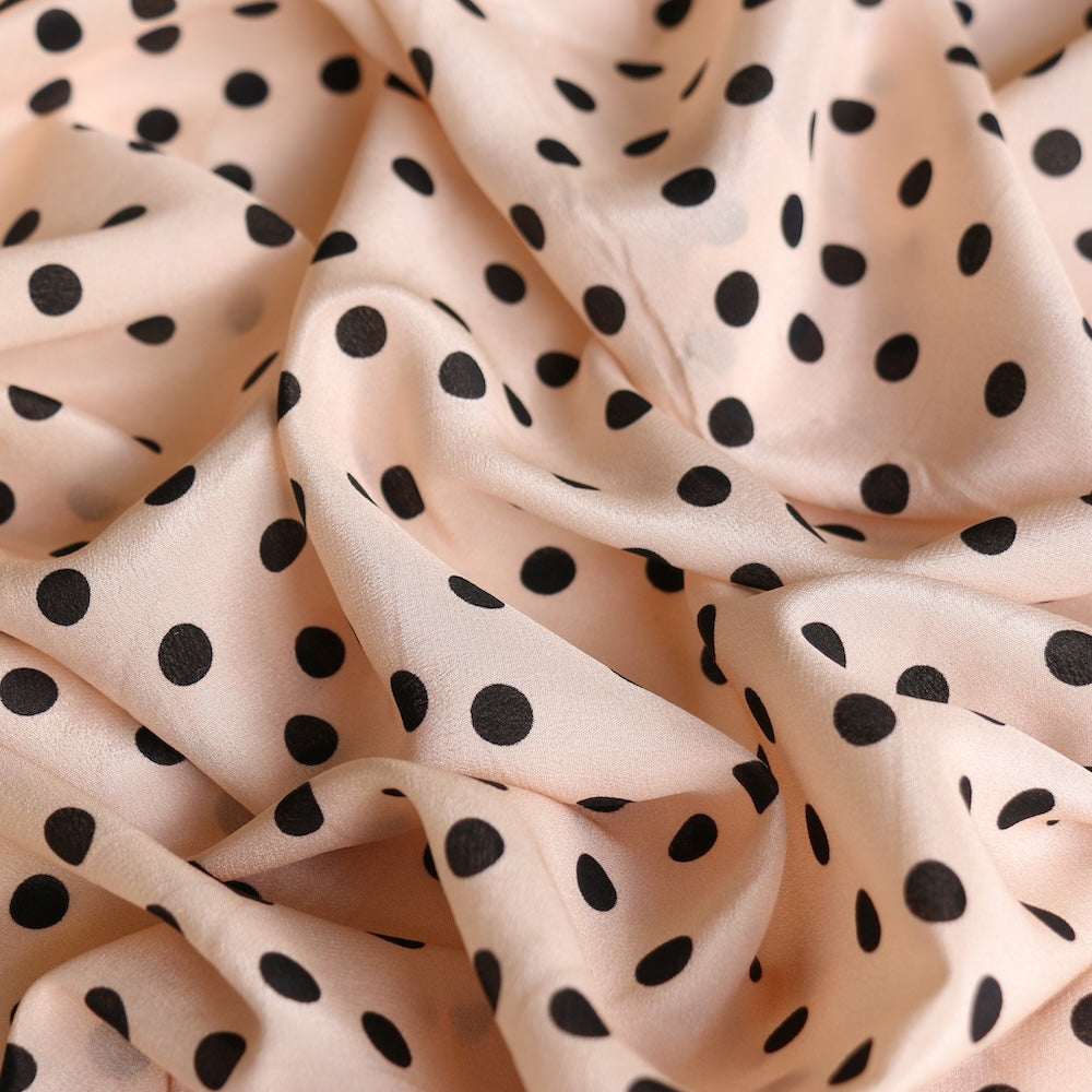 Designer end meringue/black spot printed 100% silk crepe de chine