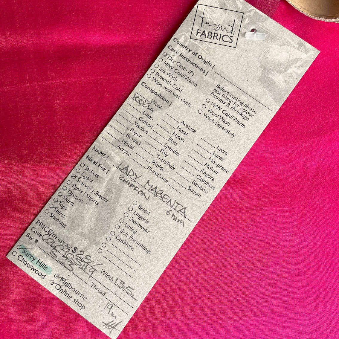 This sheer silk chiffon is ideal for tops, blouses, dresses, skirts, caftan tunics and scarves.