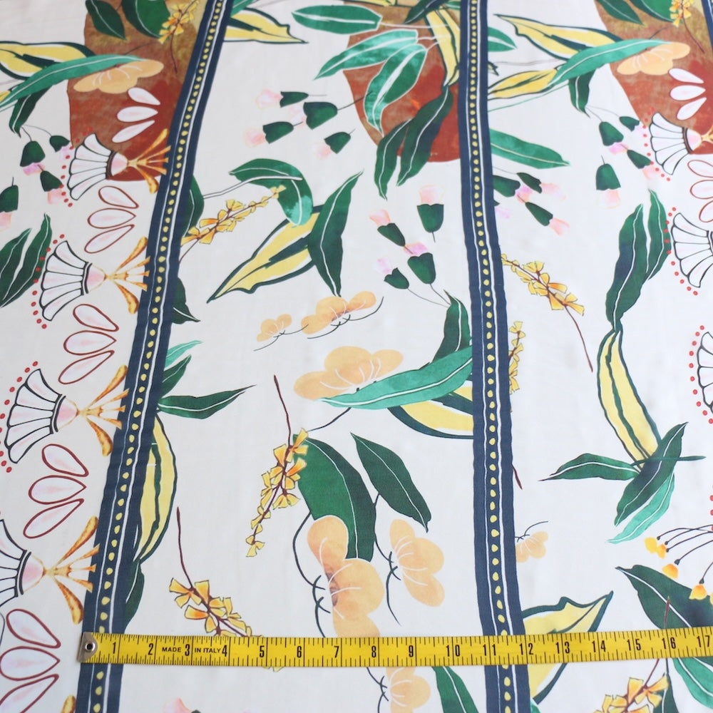 Italian designer green/off-white stripes/floral print 100% silk chiffon