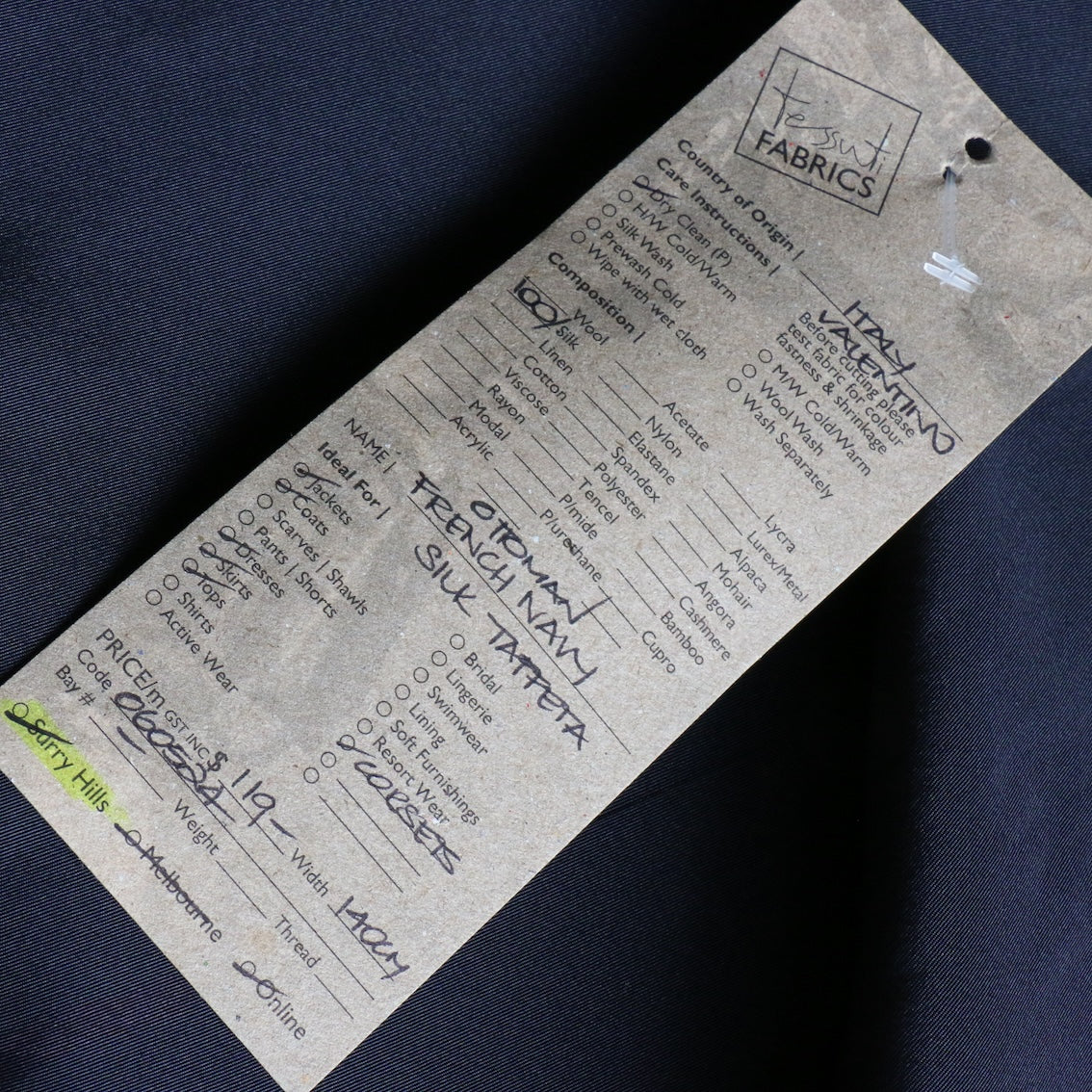 Italian designer french navy 100% silk taffeta