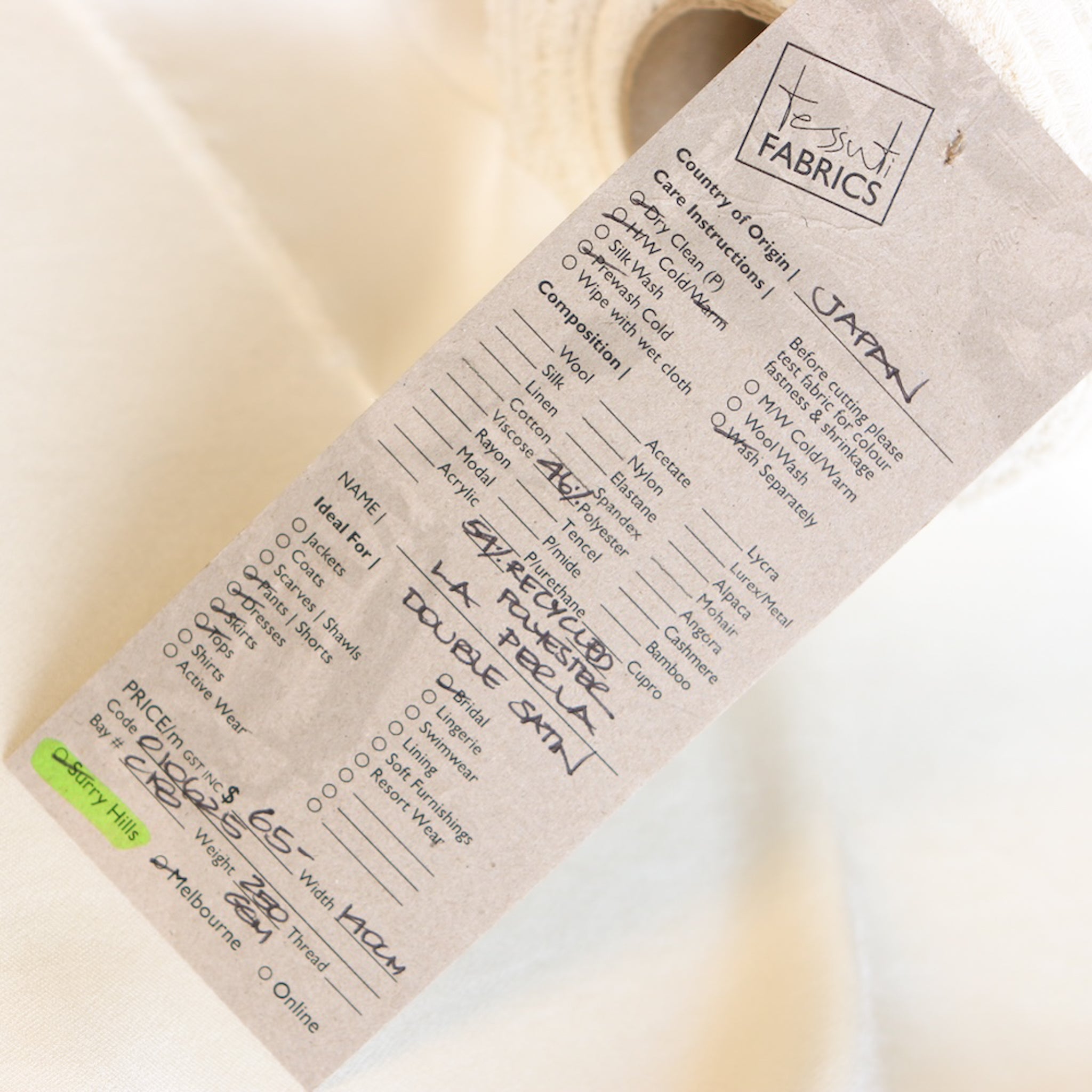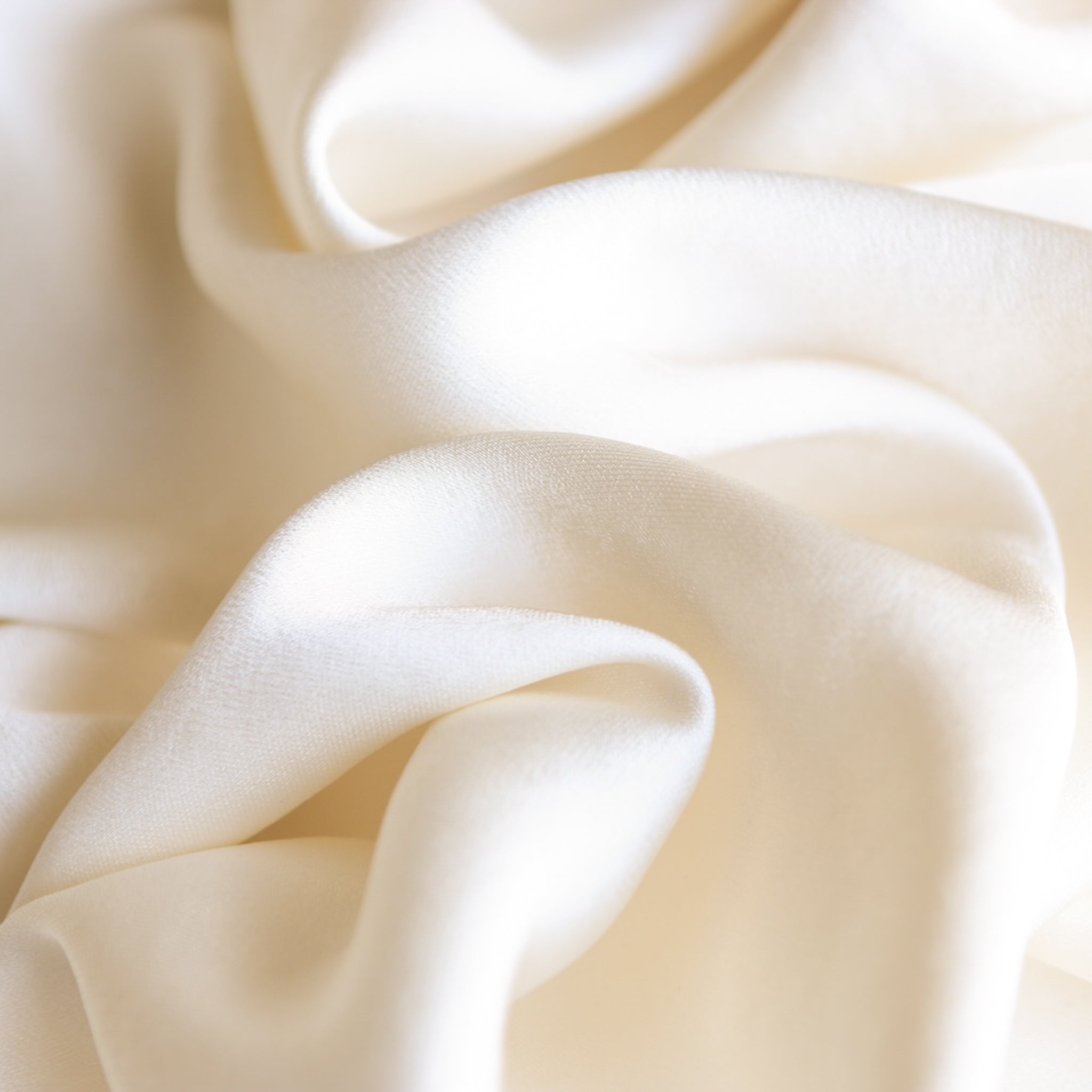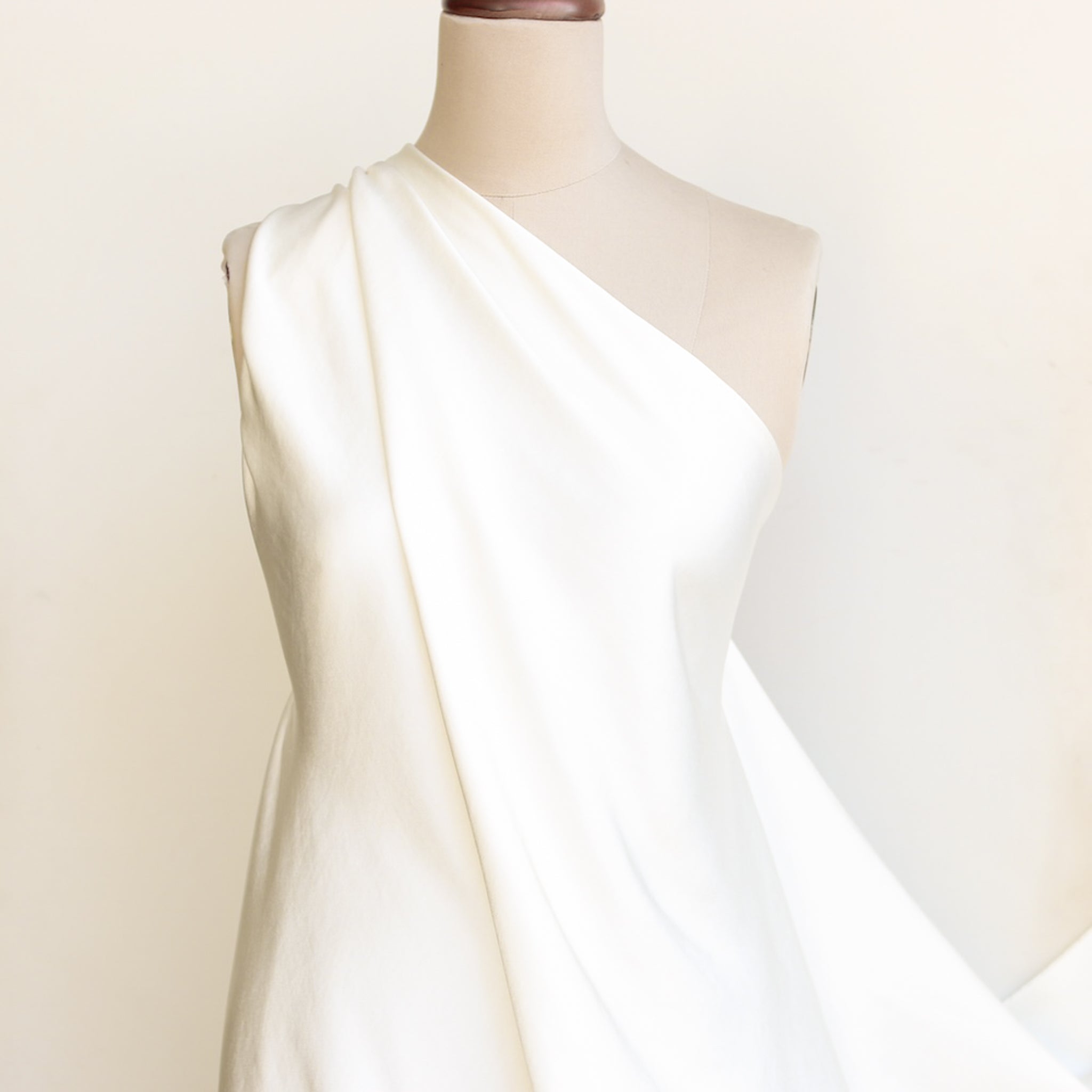 Japanese cream 54% recycled polyester 46% polyester drapey double sided hammered look satin