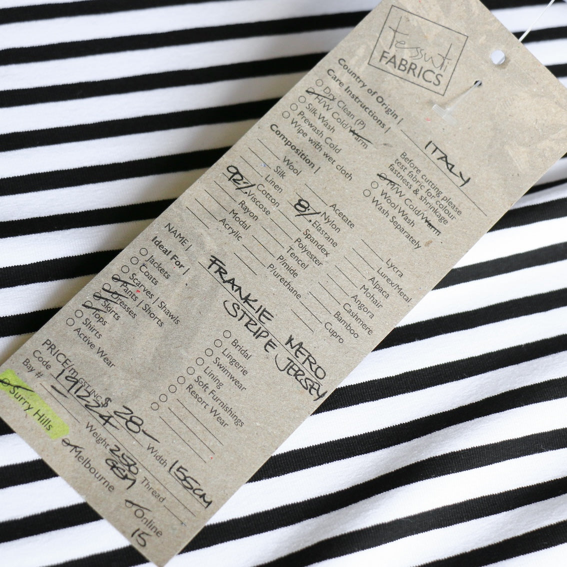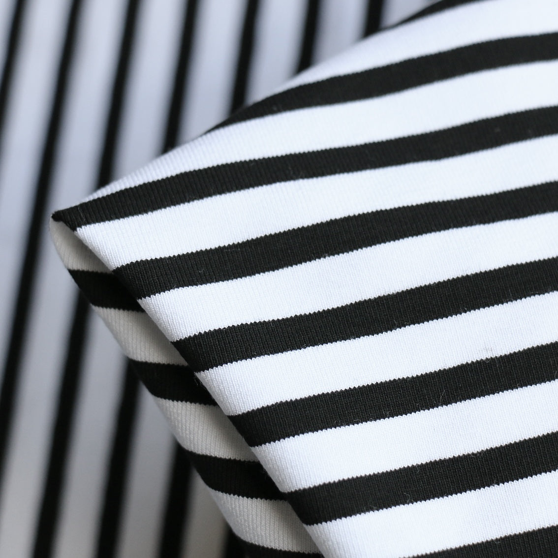 Designer-end Italian black/white striped 92% viscose 8% spandex jersey knit