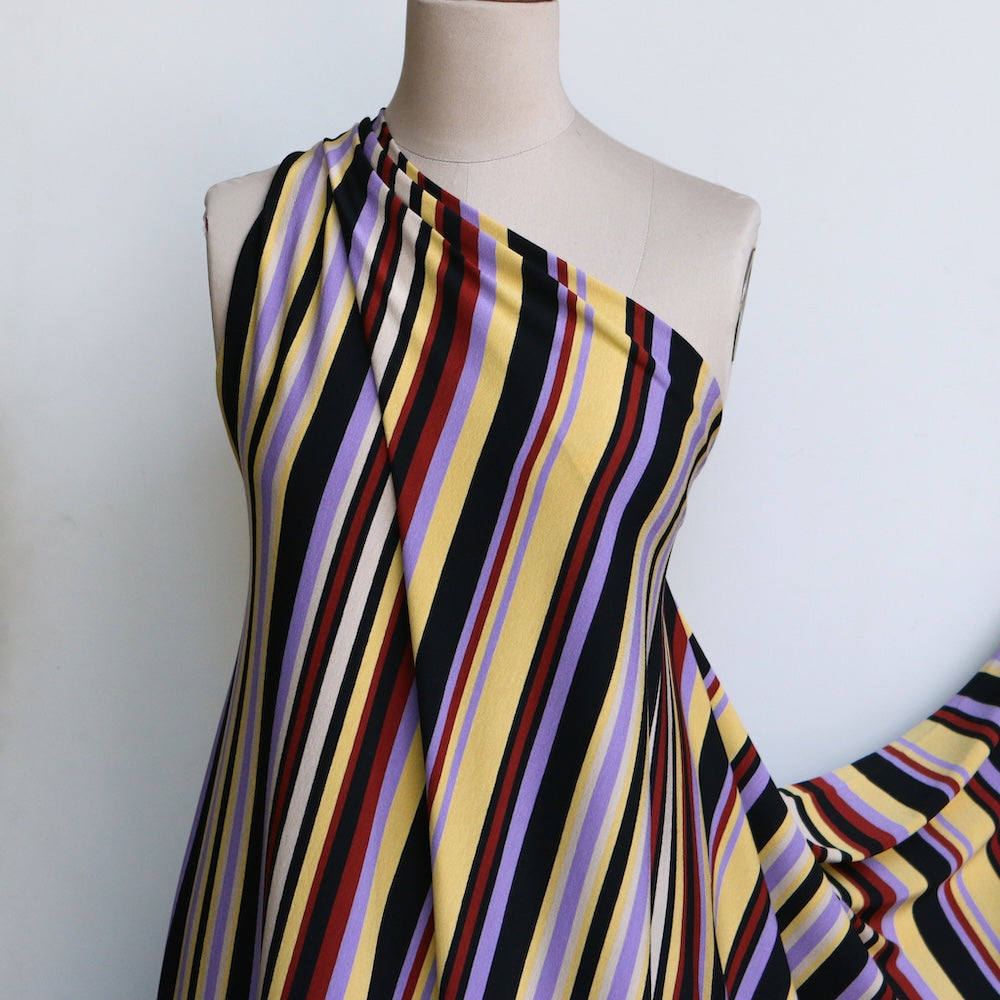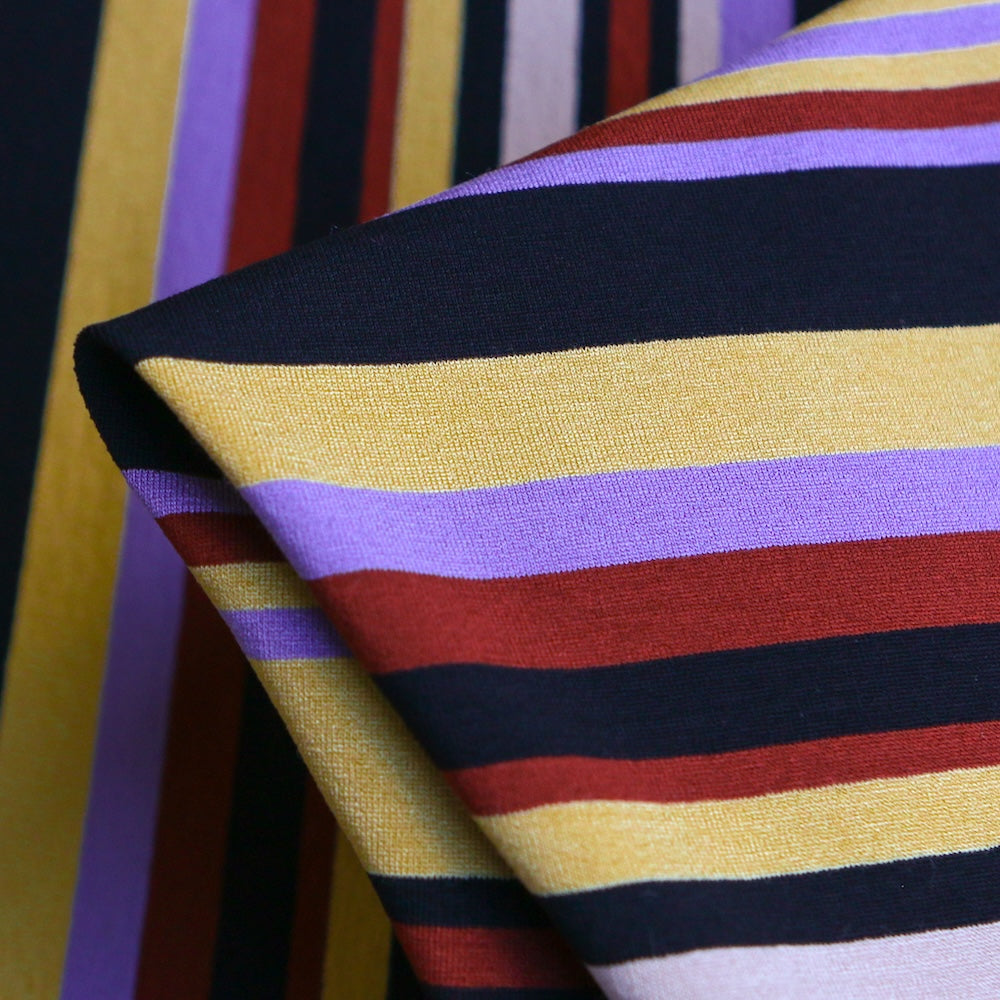 Italian rust/lavender/black/lemon striped 96% viscose 4% elastane jersey knit