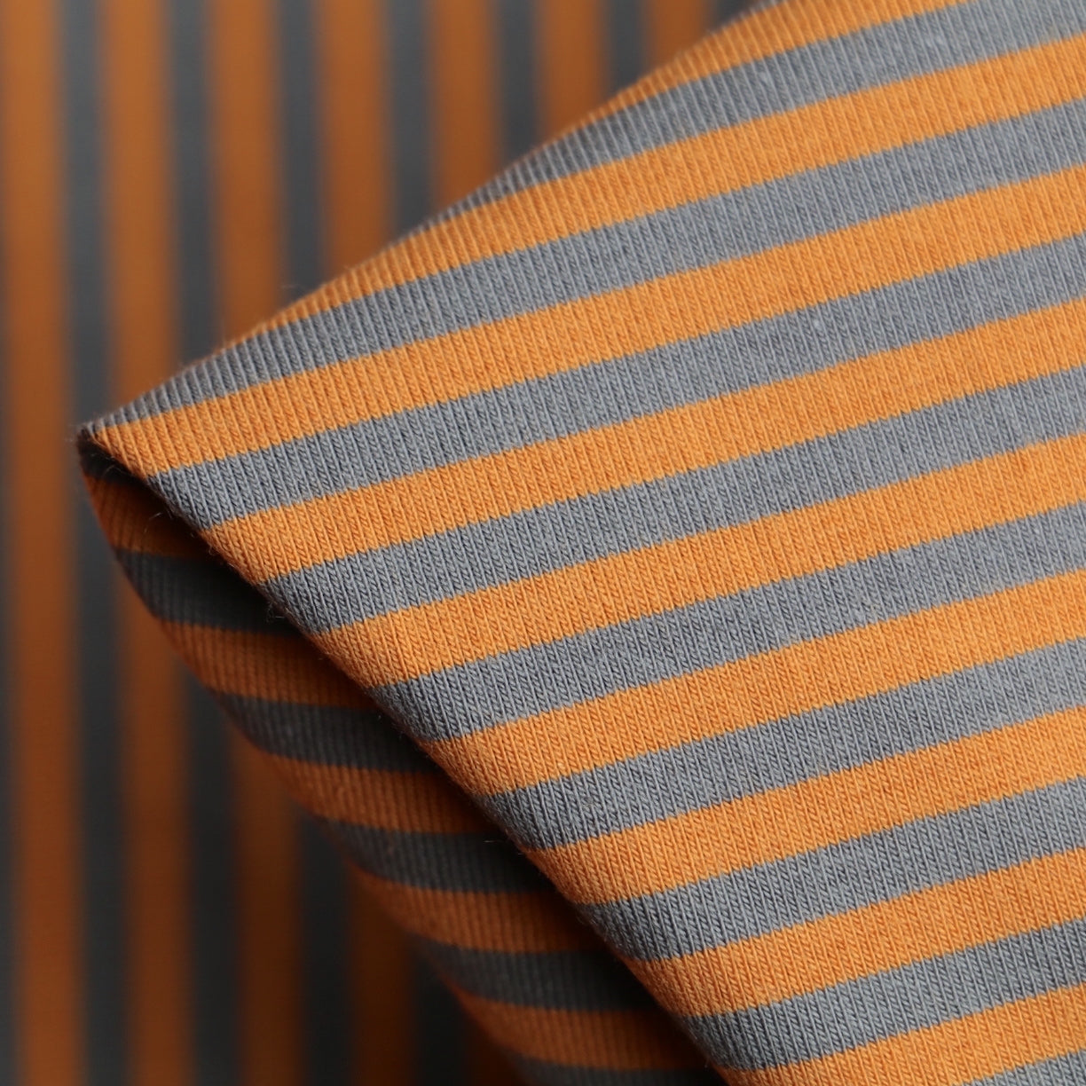 Mustard/grey striped 95% cotton 5% elastane jersey knit