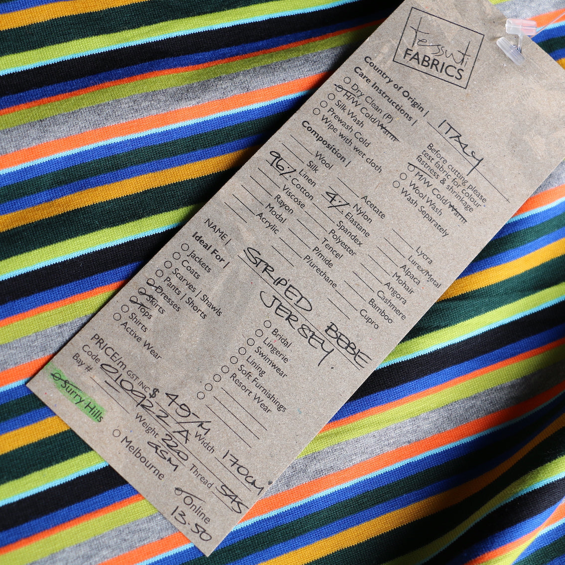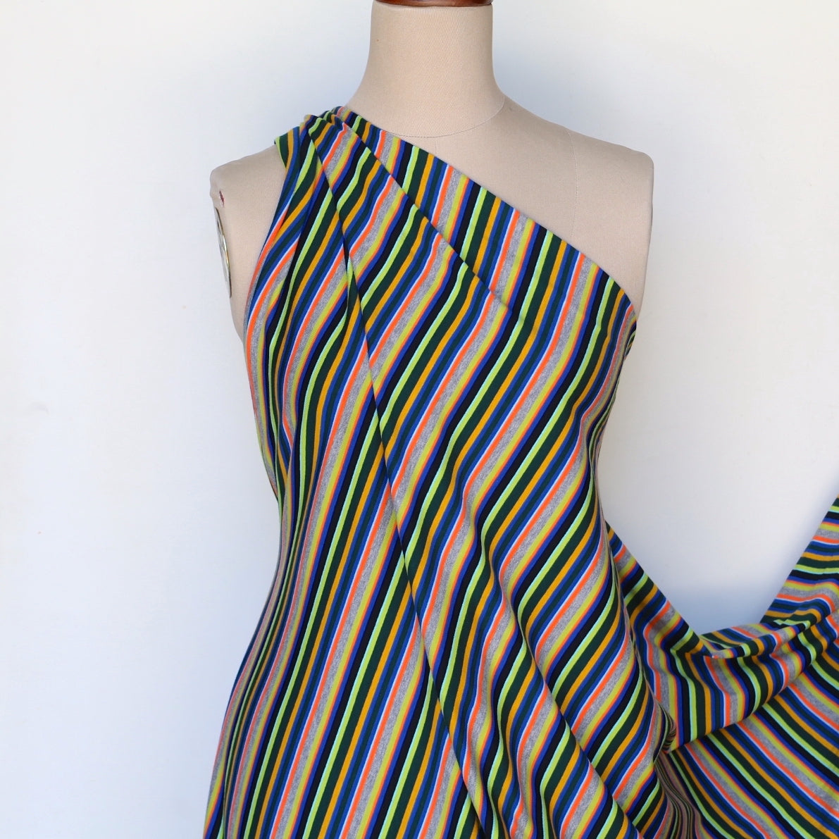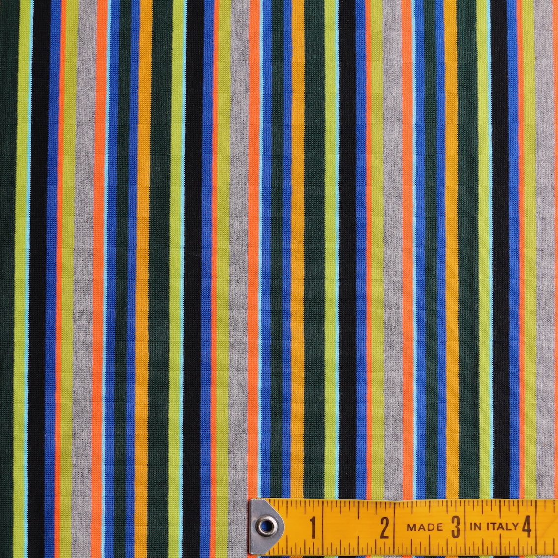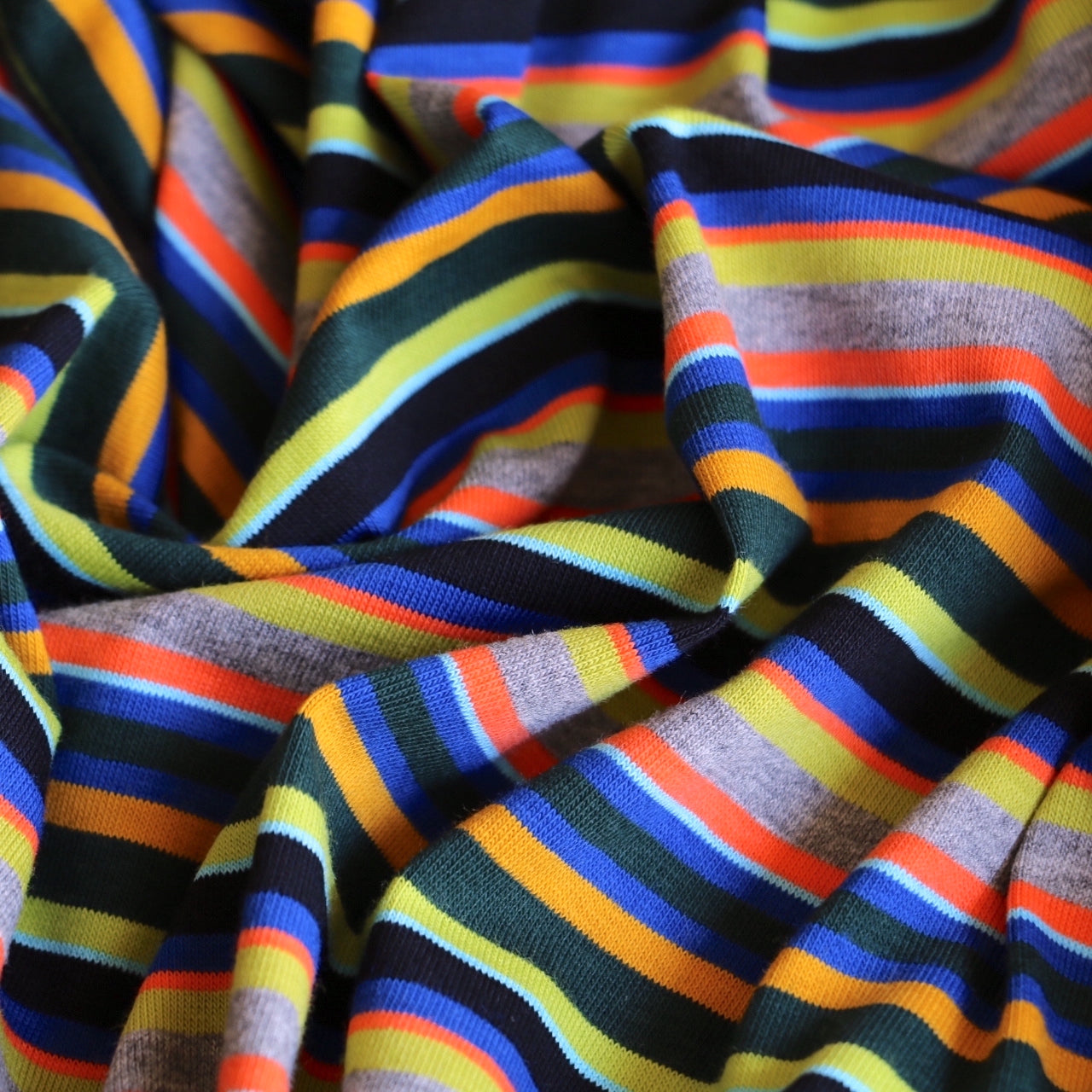 Italian multi blue/orange/grey/green/black/yellow striped 96% cotton 4% elastane jersey knit